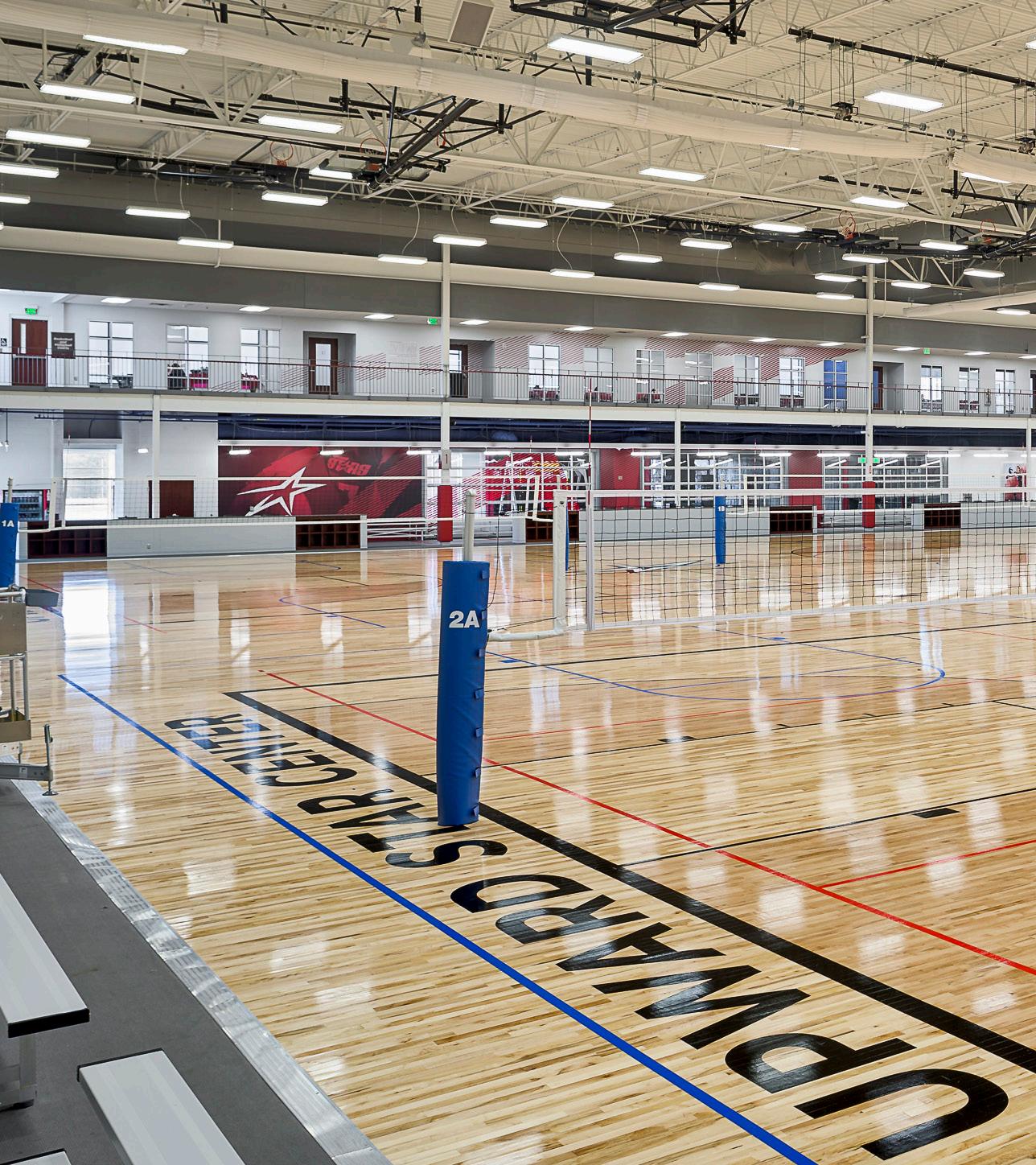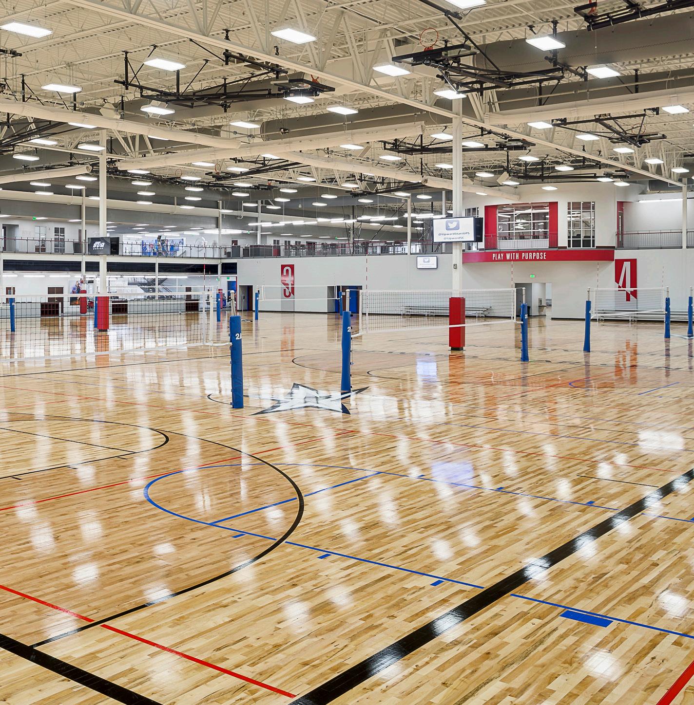 Upward Star Center: This is a new 120,000 SF sports complex that features six full-sized basketball courts, 12 regulation indoor volleyball courts, batting cages, a running rack, free weights, cardio machines, and studios designed for cheerleading, aerobics, yoga, and dance. The facility also boasts Class-A office meeting rooms, space for golf swing analysis, and a team shop.