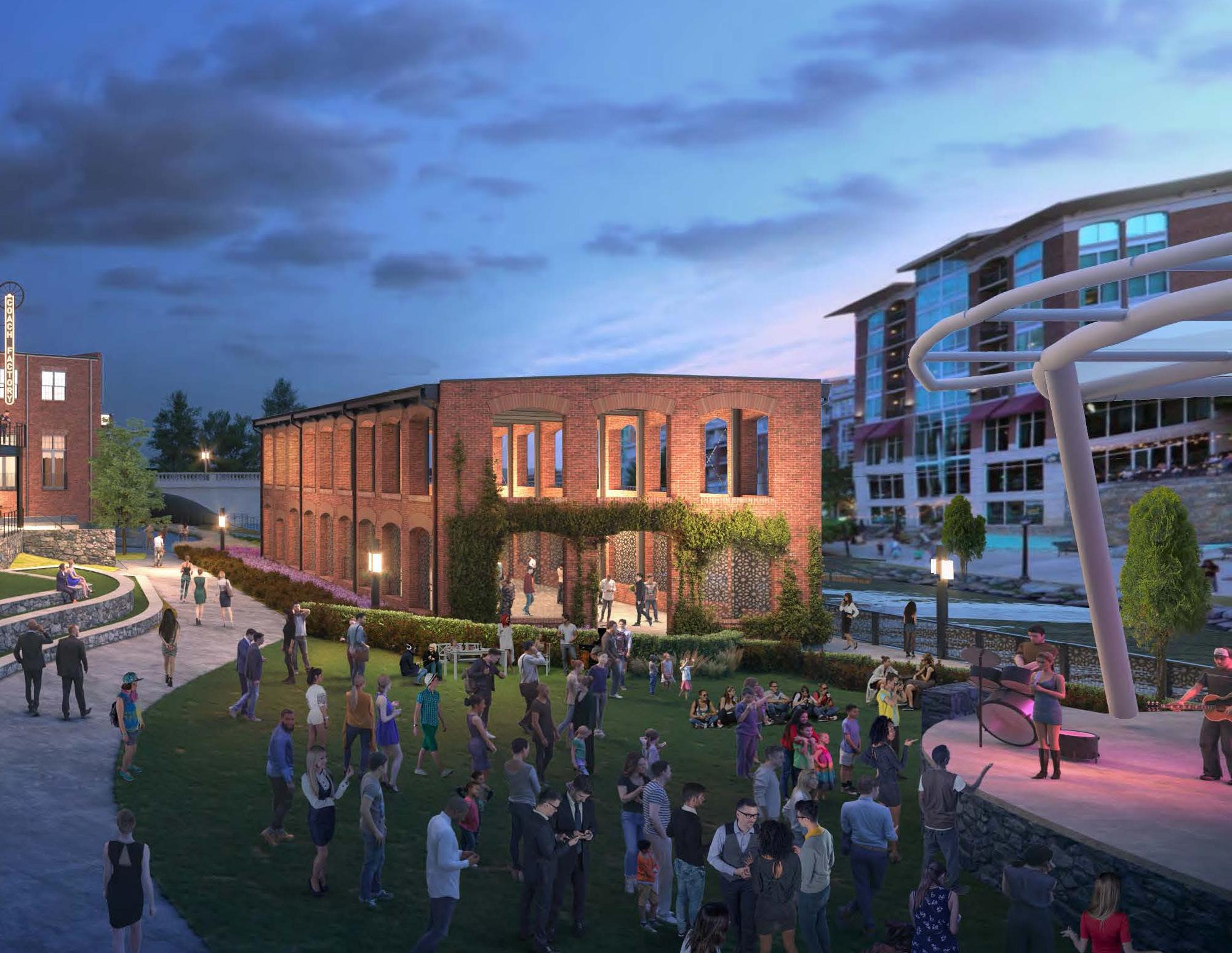 The majority of the Peace Center Campus will see improvements throughout the renovation period. The outside event space will undergo significant landscape improvements surrounding the Wyche Pavilion to more fully integrate the space with the river and Falls Park.