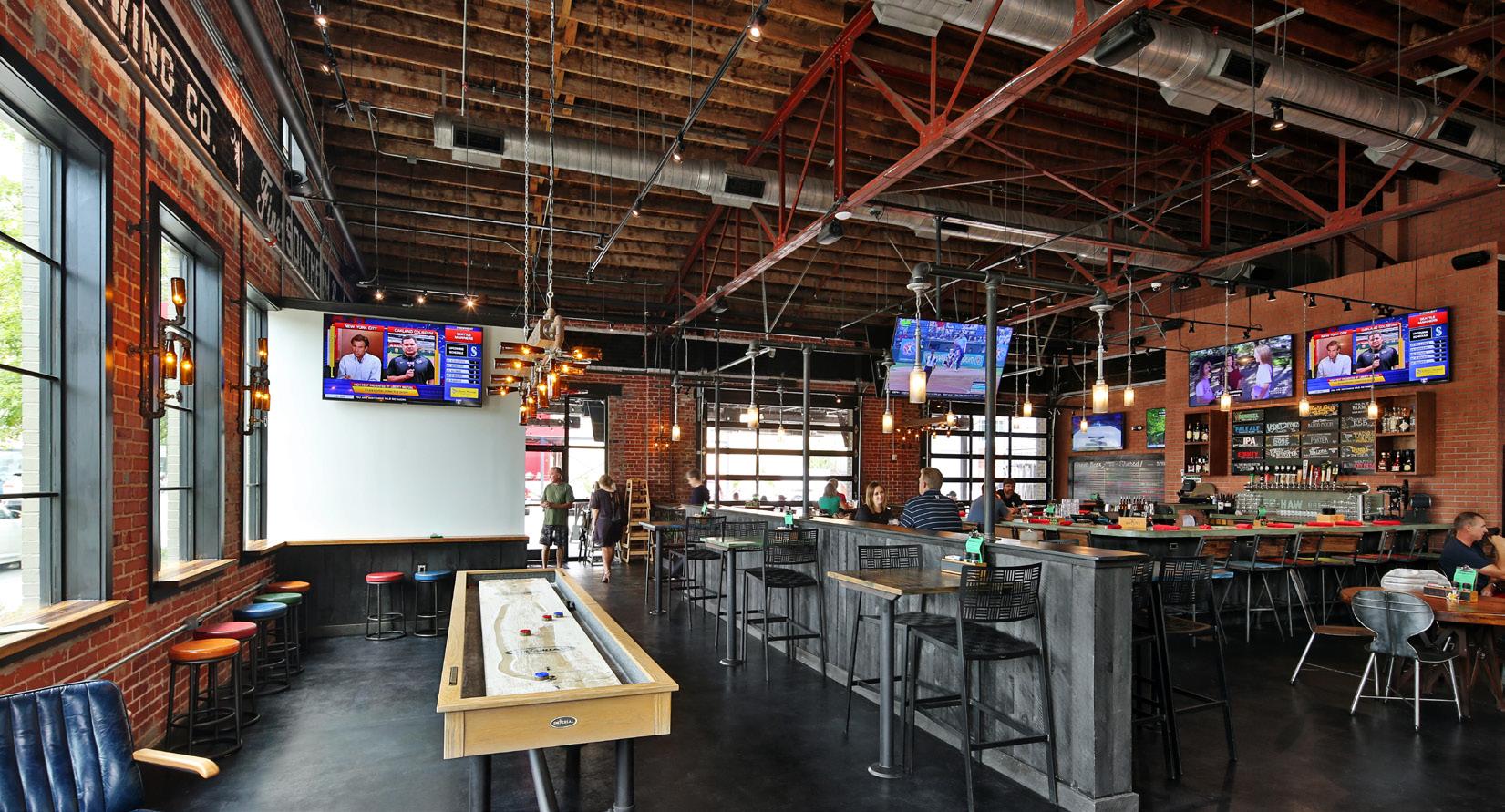 Abandoned for decades, Harper restored the Keys Building located in the heart of downtown Greenville into a multi-use space filled with historical charm and modern appeal. Yee-Haw Brewing Company, one of the first tenants to claim a spot in the newly renovated space now occupies 4,900 SF of the Keys Building. The 2,100 SF full-service brewery consists of state-of-the-art brewing equipment and trench drains for all appliances. Yee-Haw’s 2,800 SF restaurant contains a kitchen, bathrooms, bar, and dining area. The restaurant holds up to 165 occupants with additional seating outside under a canopy with festoon lighting, radiant heaters, and fans. This lively second location for Yee-Haw also incorporates a stage for bands to entertain its guests.