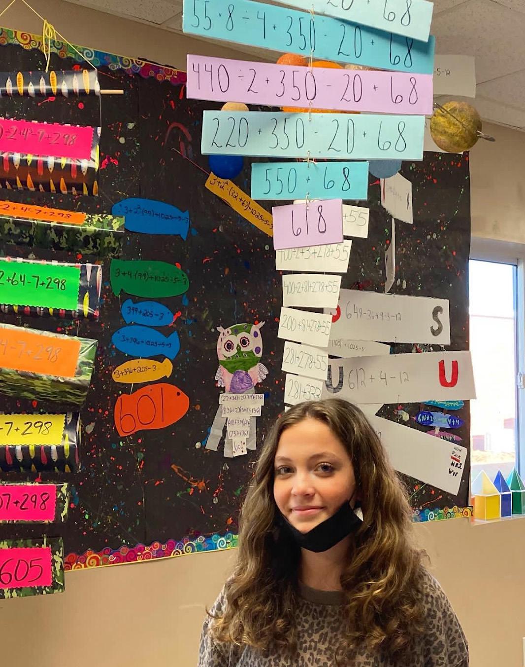 |7. After reading the novel Touching Spirit Bear by Ben Mikaelsen, Mrs. Green and Mrs. Johnson’s 7th graders present totem poles created to showcase their past, present, and future selves. |8. Zoey Minyard '27 presents her math mobile in Mrs. Ellis' class. |9. Caven Chambers '28 and Brenlee Thornton '29 place in the top 5 at the National Jr. Beta Convention held at Disney World in Orlando. |10. Señora Villegas' Spanish II students make homemade tortillias. |11. 5th graders Lilly Kate Rogers, Hayes Griffin, and J.C. Carr make inferences as detectives in Mrs. Jessica James' class.