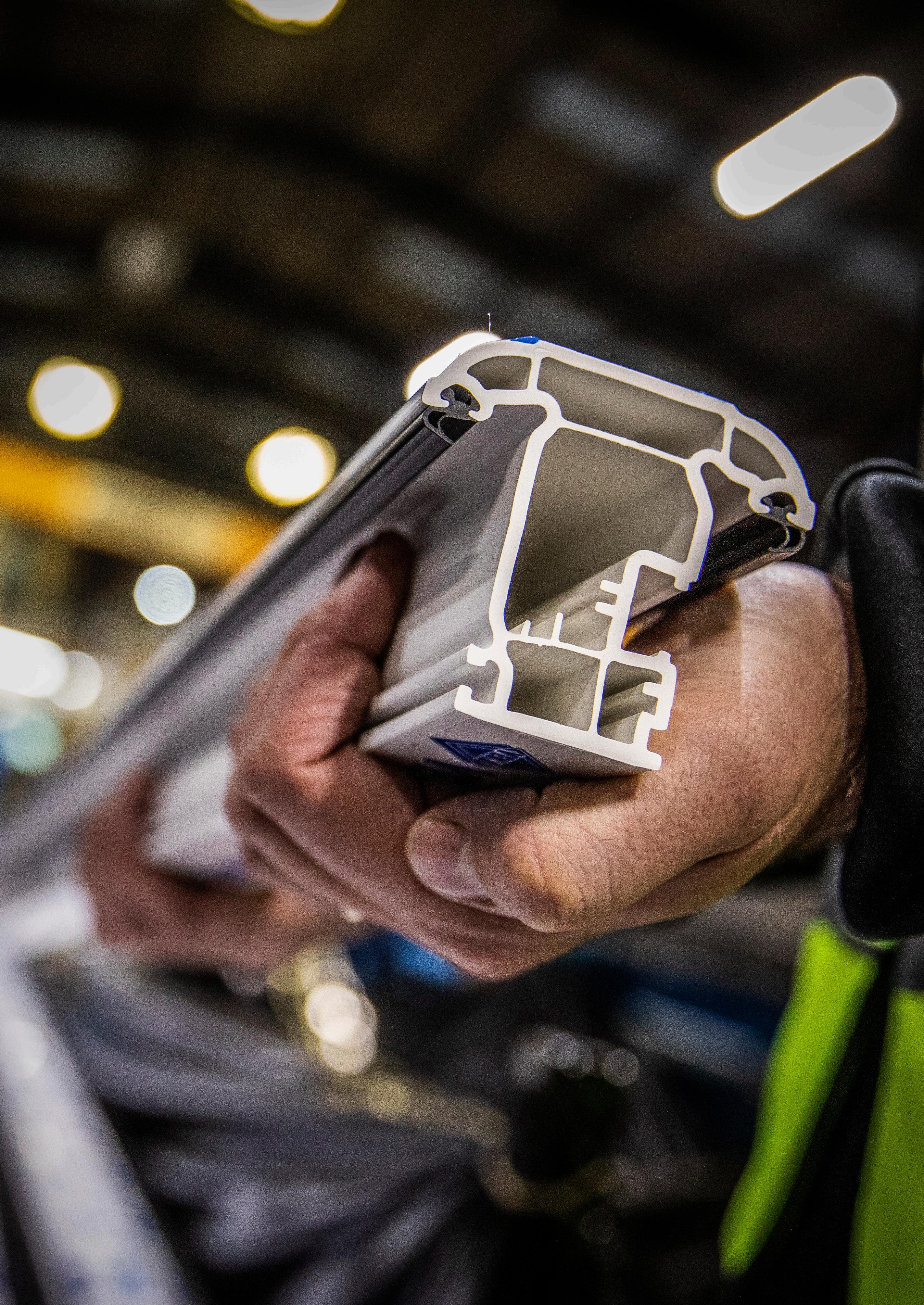 The site processes end-of-life PVCu windows and doors with an annual recycling capacity of around 25,000 tonnes. A typical PVCu window has an average lifespan of about 35 years and can be recycled up to ten times. By reprocessing PVCu material, we support resource efficiency and reduce the need for raw materials. At the end of their service life, all parts of a window — including the PVCu profile, glass, hardware, steel or aluminium reinforcement, and gasket — can be recycled through our facility.