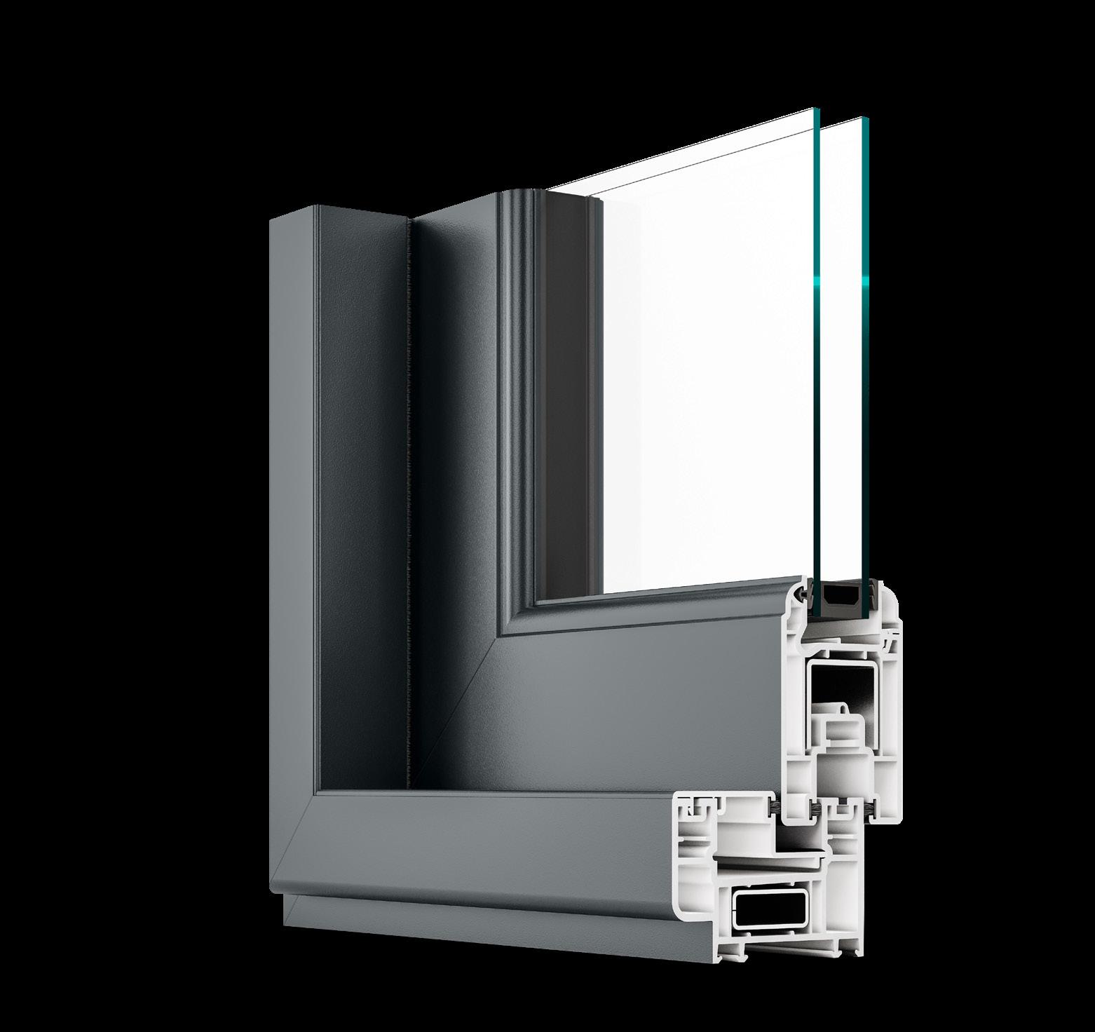latest technologies to create pelletised PVCu which is passed onto approved extruders to make new building products, including new PVCu windows. VEKA’s latest ReCore range uses grey recycled PVCu in the core of its products, like the ReCore Cill above.