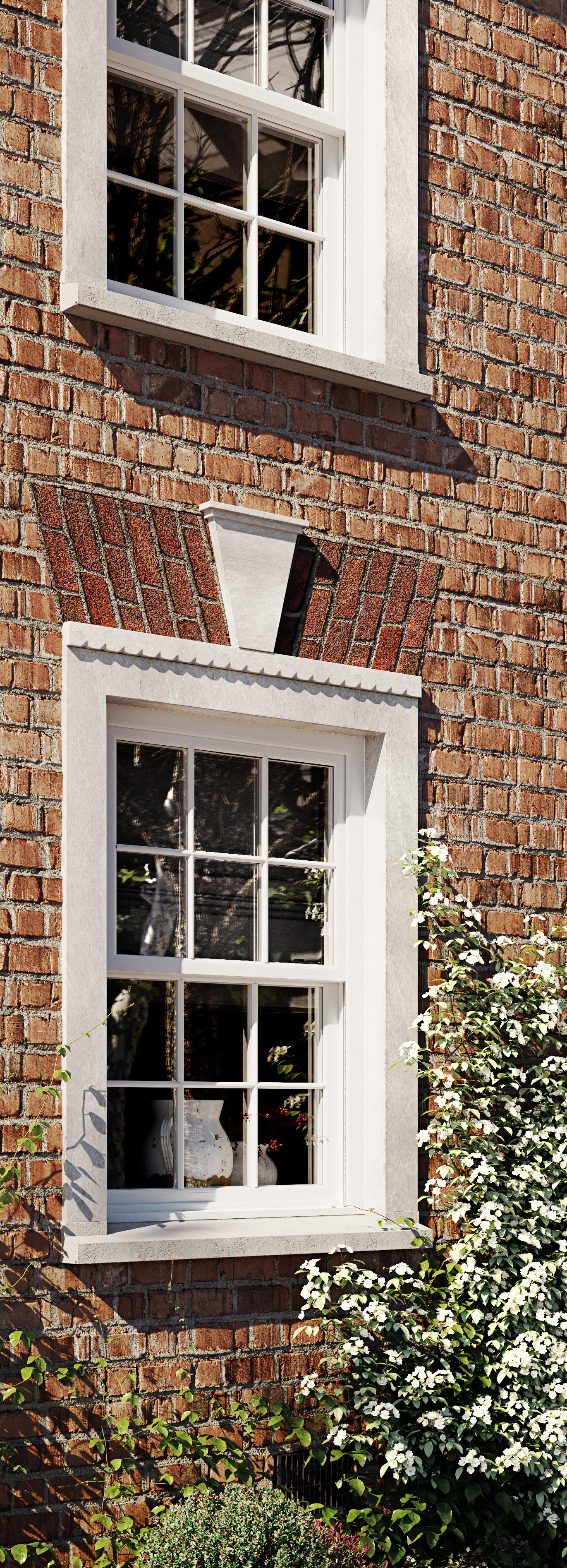 Designed to replicate traditional sash windows with run-through horns, deep bottom rails, and sculptured detailing— ideal for heritage or conservation settings.