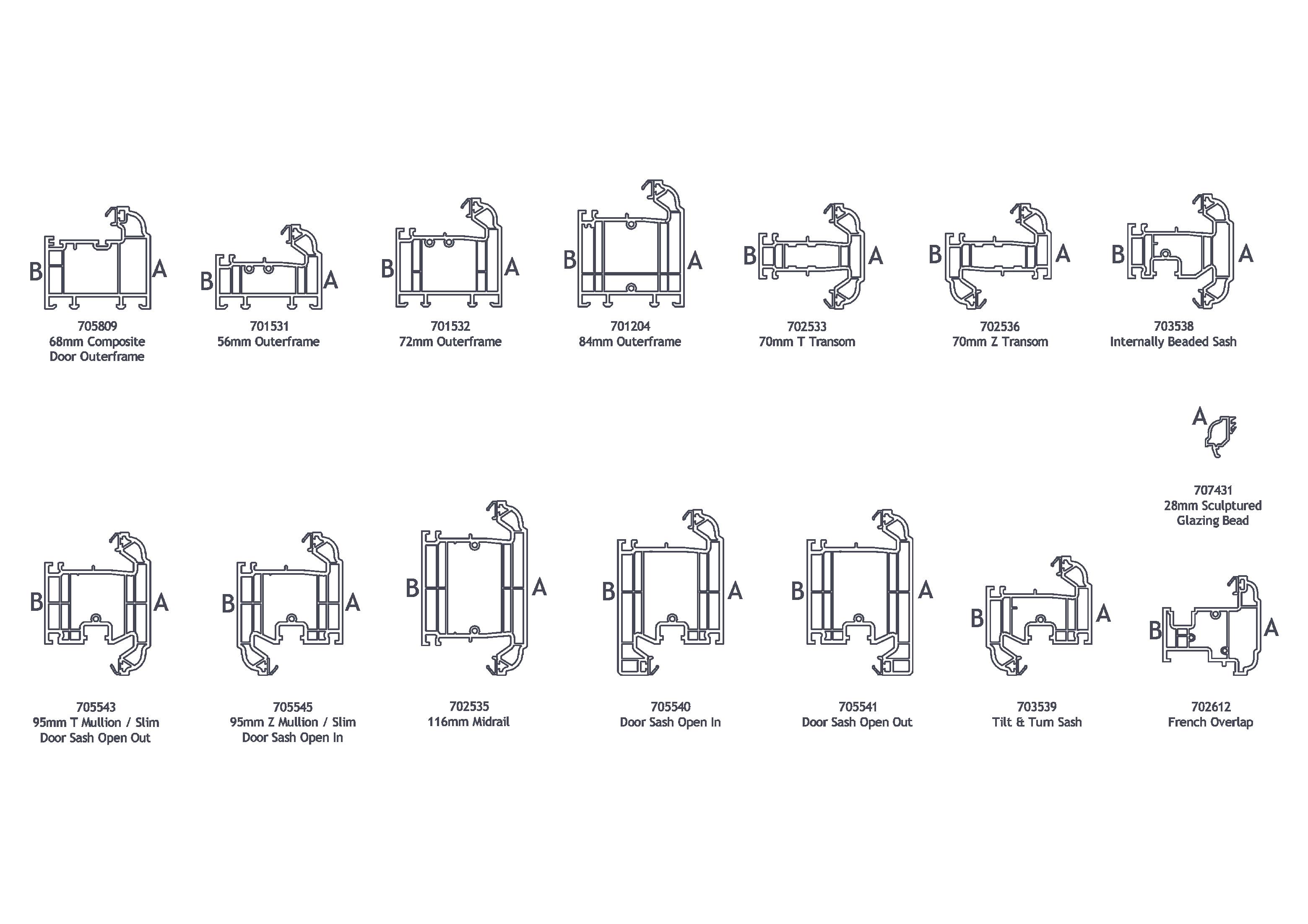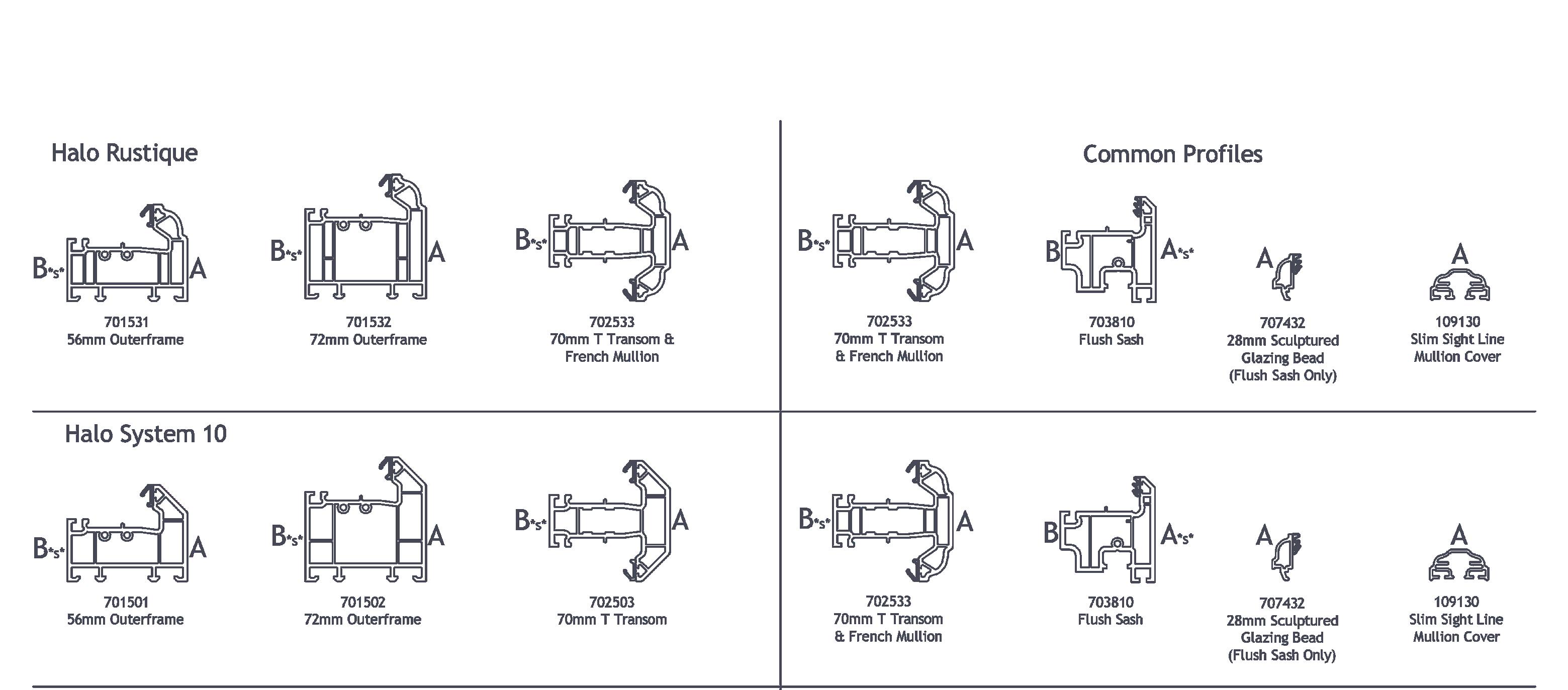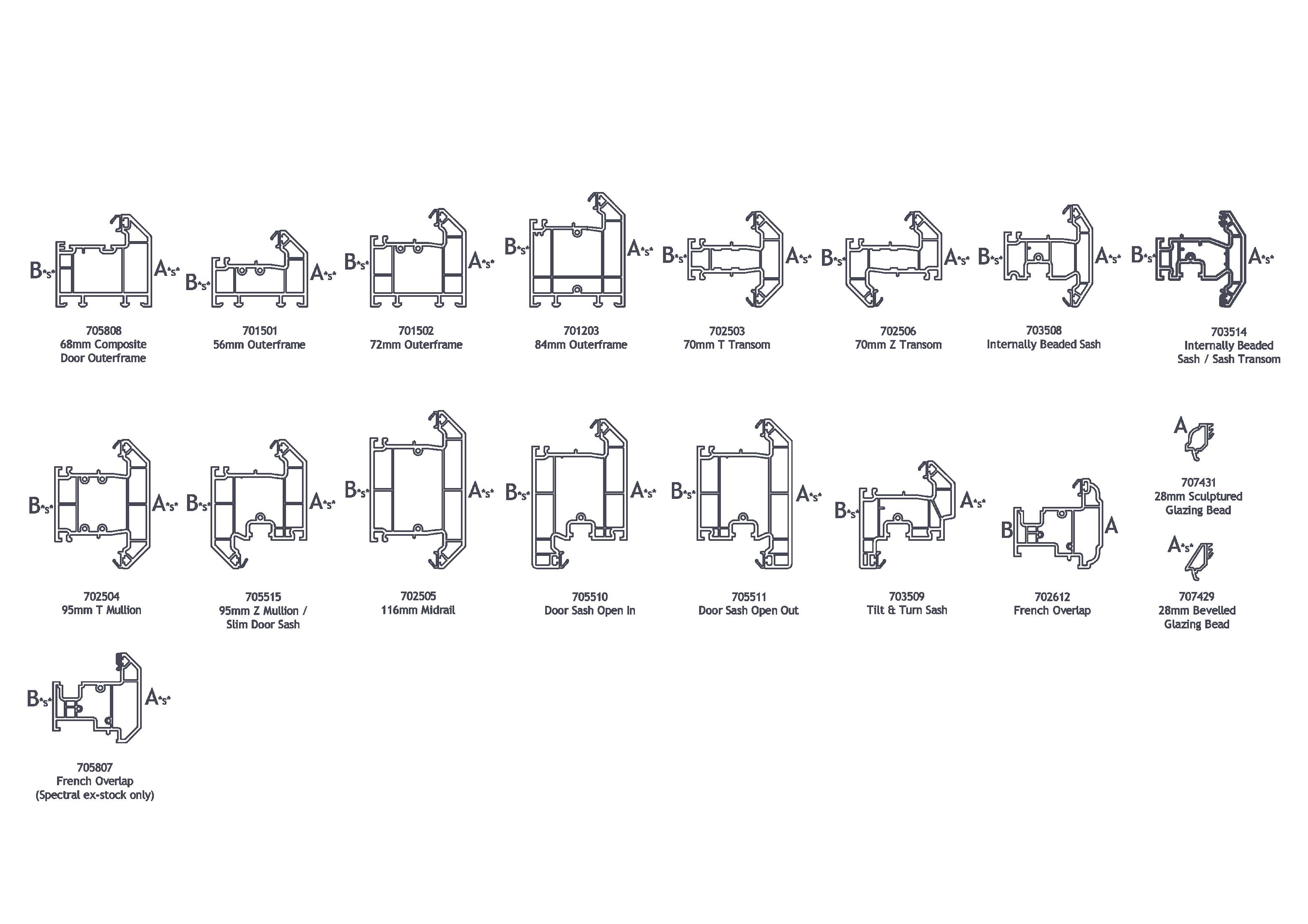 For ex-stock availability of the Rustique and System 10, please refer to their specific availability chart within this brochure. These profiles are shown here as being compatible with the FlushSash profiles.