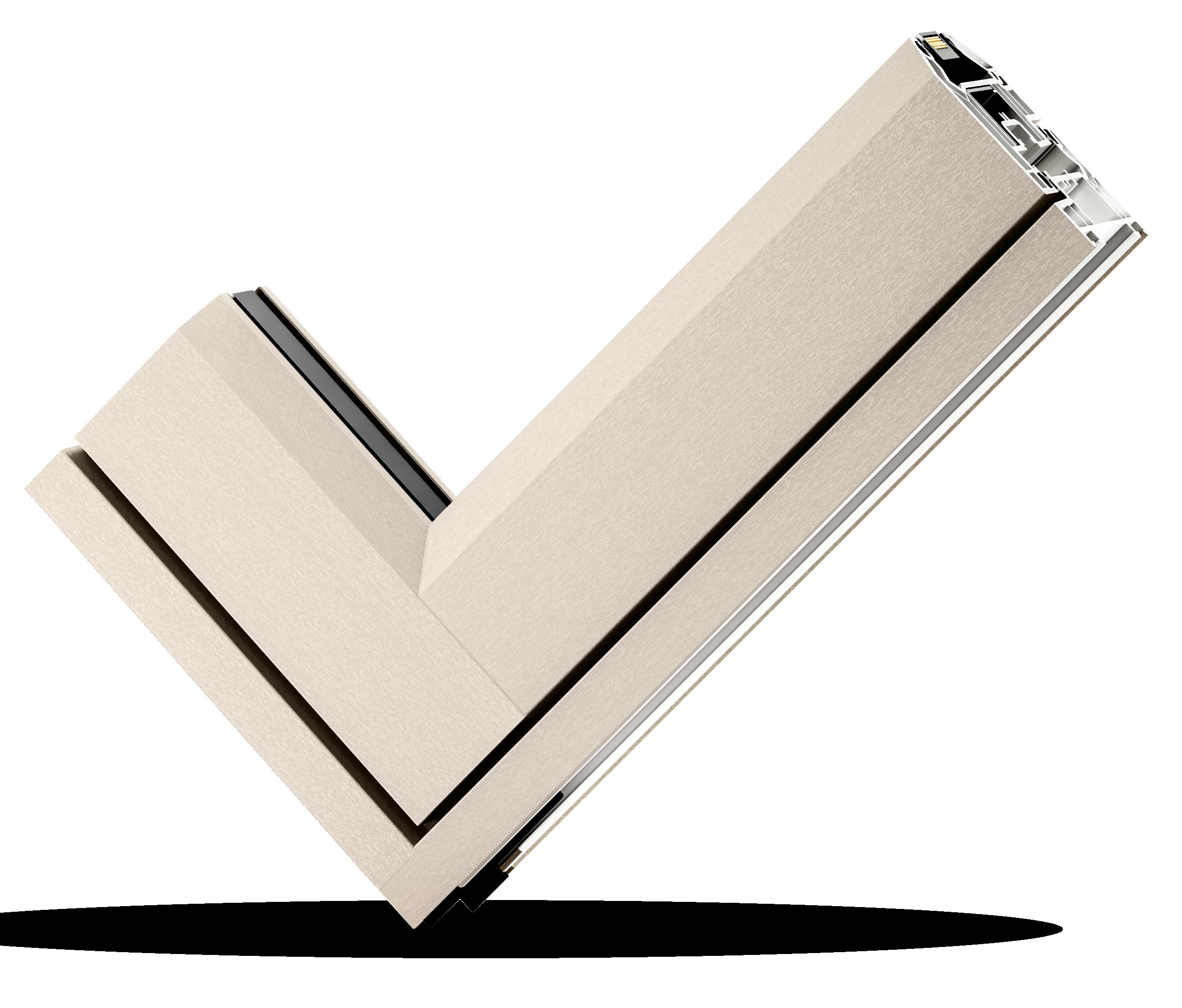 A decorative foil for windows and doors exclusive through VEKA, offering the very best of both worlds: the practicality of a durable lacquered finish, with a finely-textured surface that mirrors the sophistication of powder-coated aluminium.
