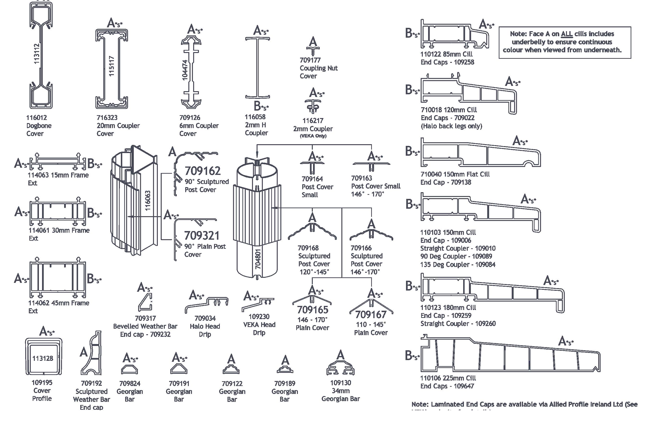 A range of laminated ancillaries and injection mouldings are fully compatible with all profile systems, providing the perfect professional finish for any installation.