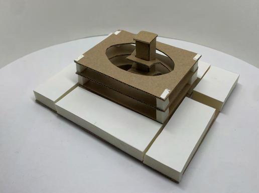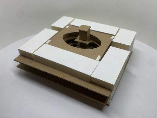 This study model at a scale of 1:200 was useful to understand the massing of each flat in relation to the block of 24. It helped me understand how the decks, balconies, and courtyard could be used.