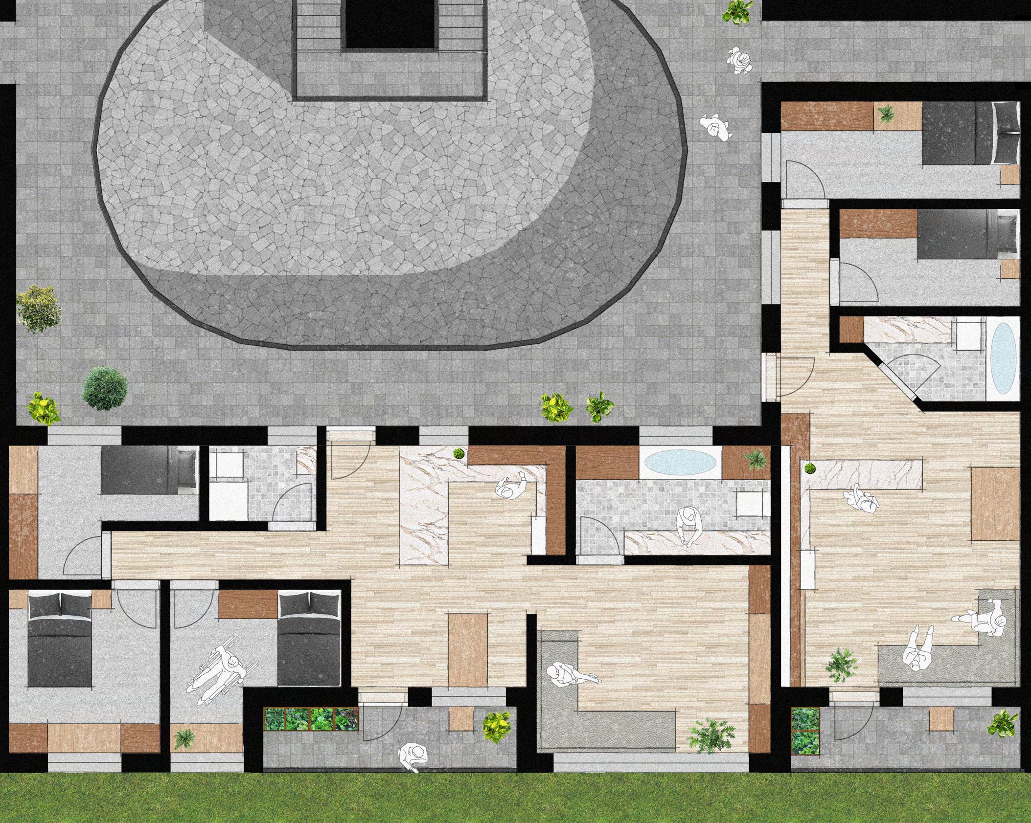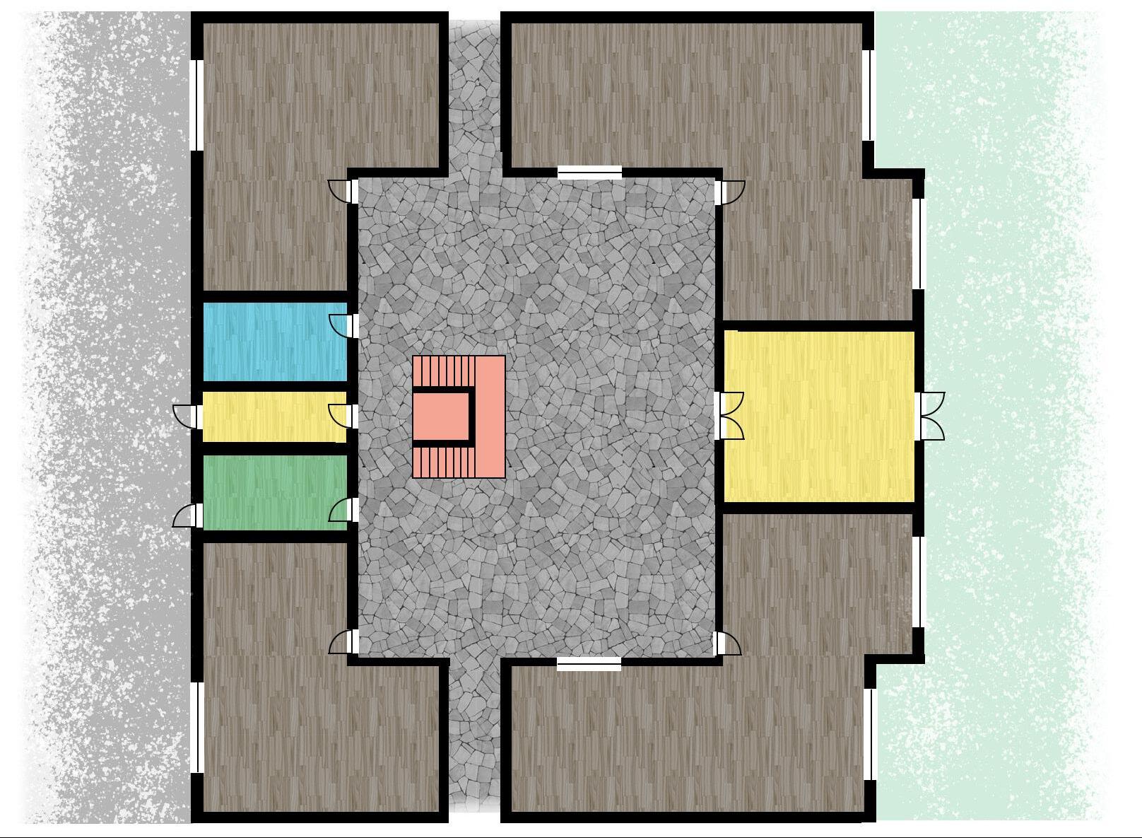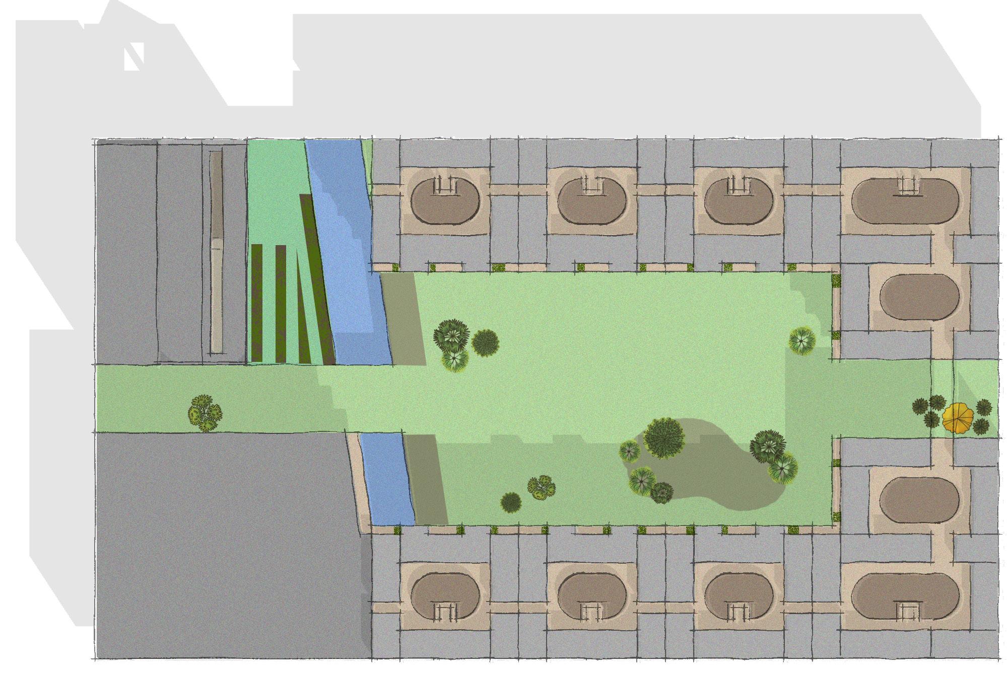 8. The condition of the inner courtyard is poor so I propose replacing it with a large central park with an integrated flood protection system.