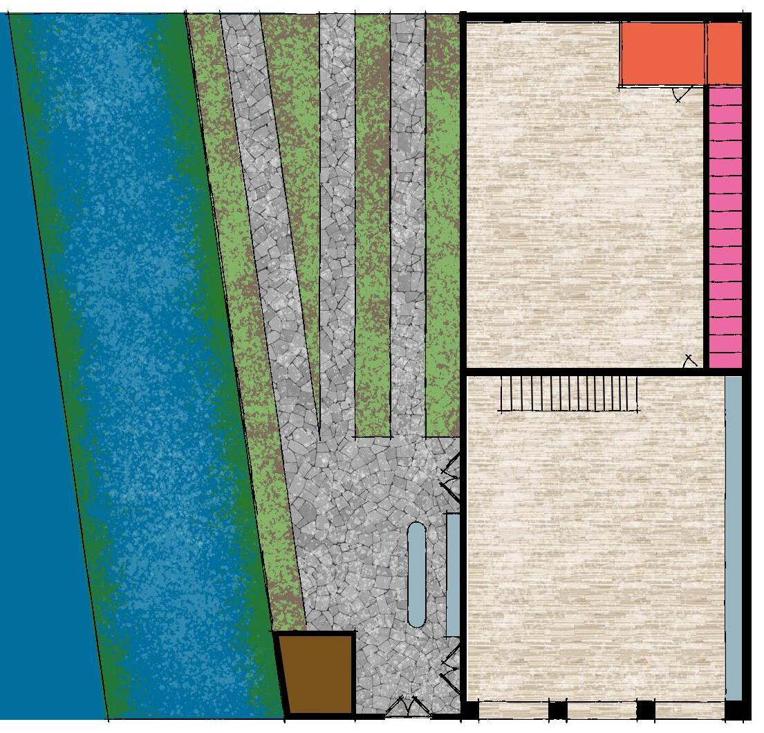 3. This storage unit next to the river is in poor condition and not worth keeping. I propose it to be demolished and planted as a neighbourhood vegetable garden.