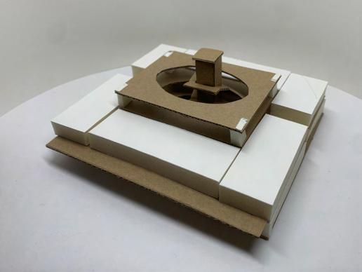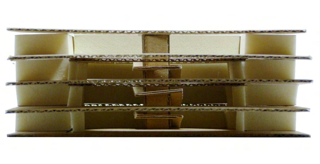 In the model, the high and low floors are connected in the middle, forming a symbolic meeting-ground and recognising how different income groups can benefit from living and working together. I believe a utopian future of housing would bring high- and lowincome groups together in harmony, reducing division.