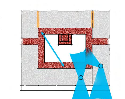 Park Hill’s ‘porches’ turned the access decks into a multifunctional space, used to meet neighbours, grow plants, and store shoes. To use this dynamic space in my scheme I would have to change the shape of the decks. To avoid reducing the internal floor plans of the flats, the decks could be extended into the courtyard.