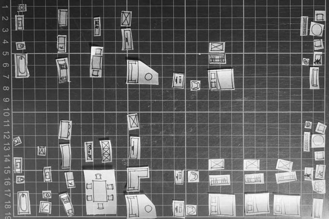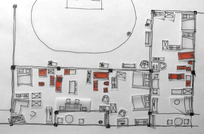 Inspired by The Place of Houses by Charles Moore (2000) I considered the ‘Three Orders’ of machines, rooms, and dreams. While all of the pieces I had cut out could be considered as machines, I focused on the fixed appliances and kept these at the back of the plans, making space for ‘rooms’. I explored how people would move through and around the spaces with ease as well as considering lines of sight and implied thresholds. This inspired the addition of a sliding door, changing the rooms from open- to closed-plan. Finally, the balconies and access decks provide a space for ‘dreams’ facilitating views of the city and interactions with neighbours.