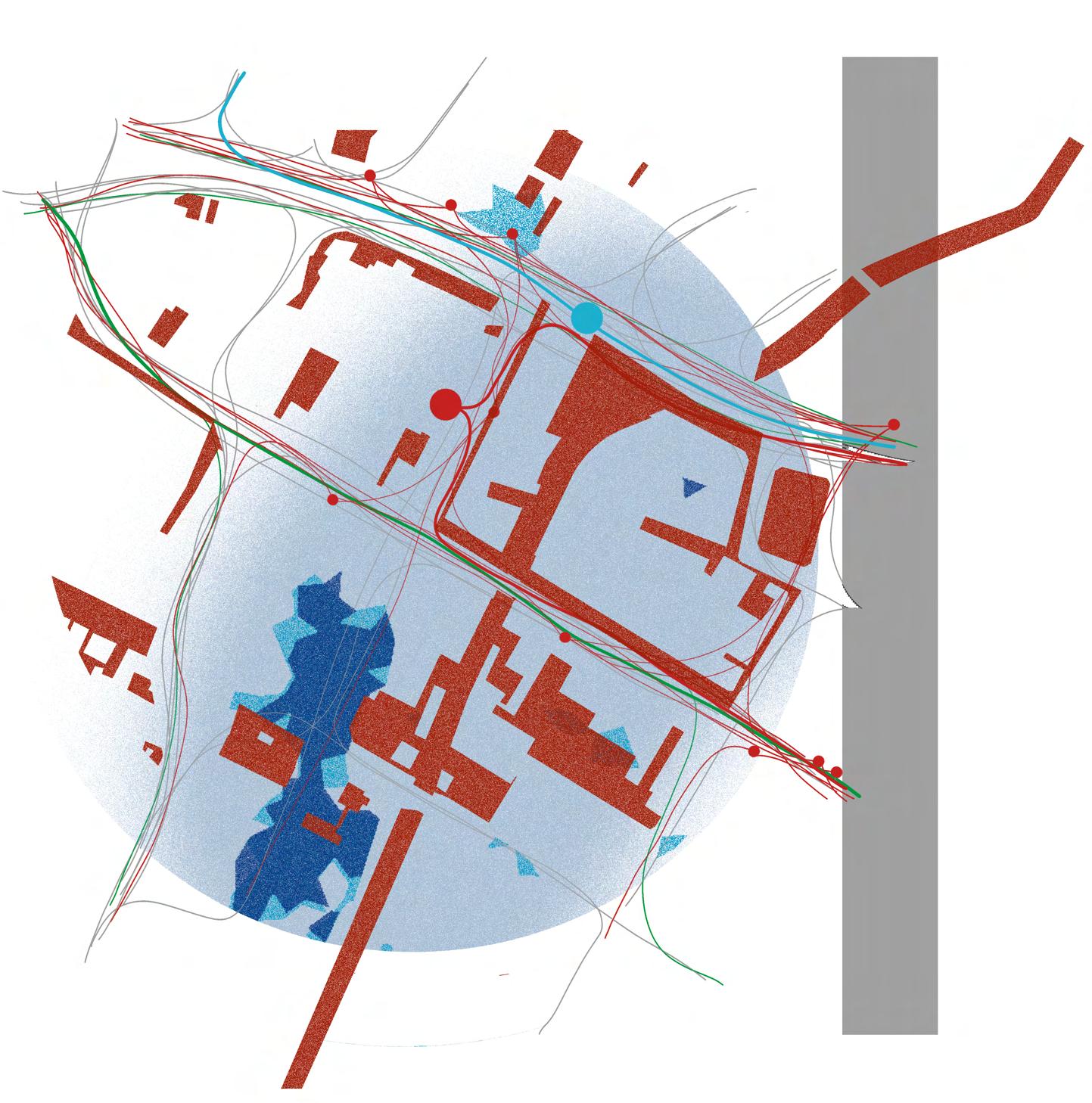 Part 1 begins with an in depth examination of the site and its surrounding context, focussing on movement through space and water management. This is followed by a ‘dystopian vision’ of 2070 exploring the worst case scenario for the site if no positive interventions are made.