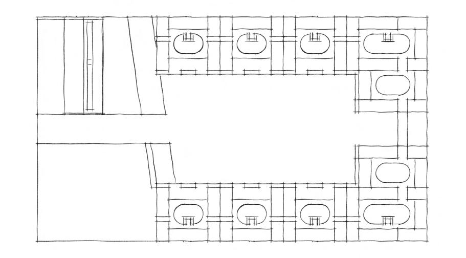 I used the spatial principles highlighted in my R50 precedent study to inform my design. It is essentially an inverted plan with the circular movement occurring in the centre of the plan and the flats situated at the edge. This allows lines of sight across the plan and between floors, facilitating conversation and play.