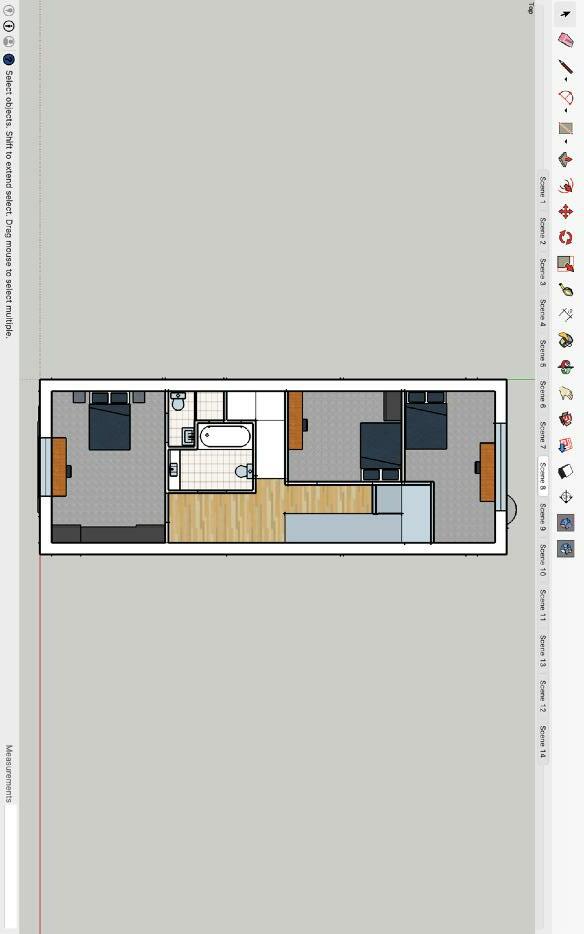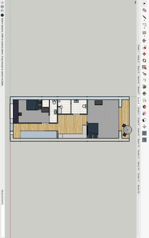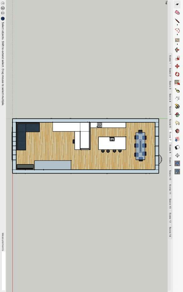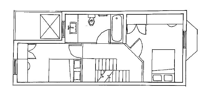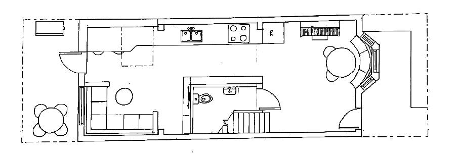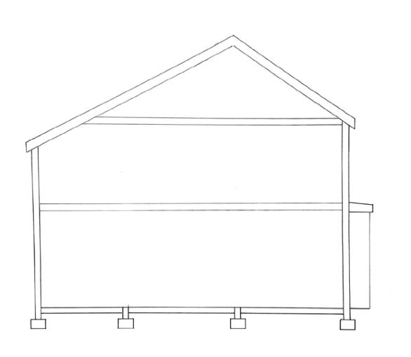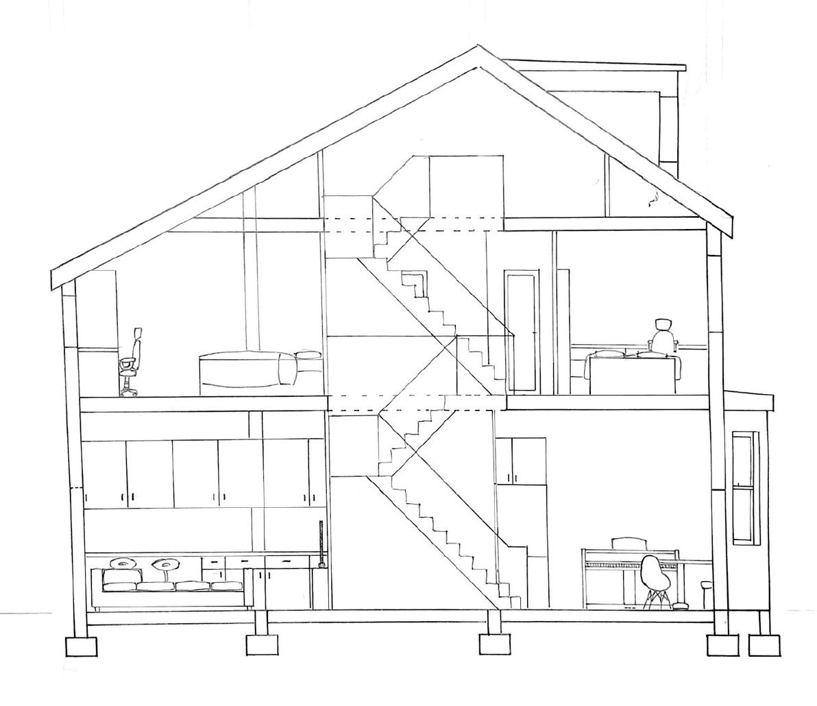 The wife’s father moves in. A new kitchen and bedroom are installed. The floor joists of the kitchen are designed to allow the installation of a lift down to the grandads room in the future.