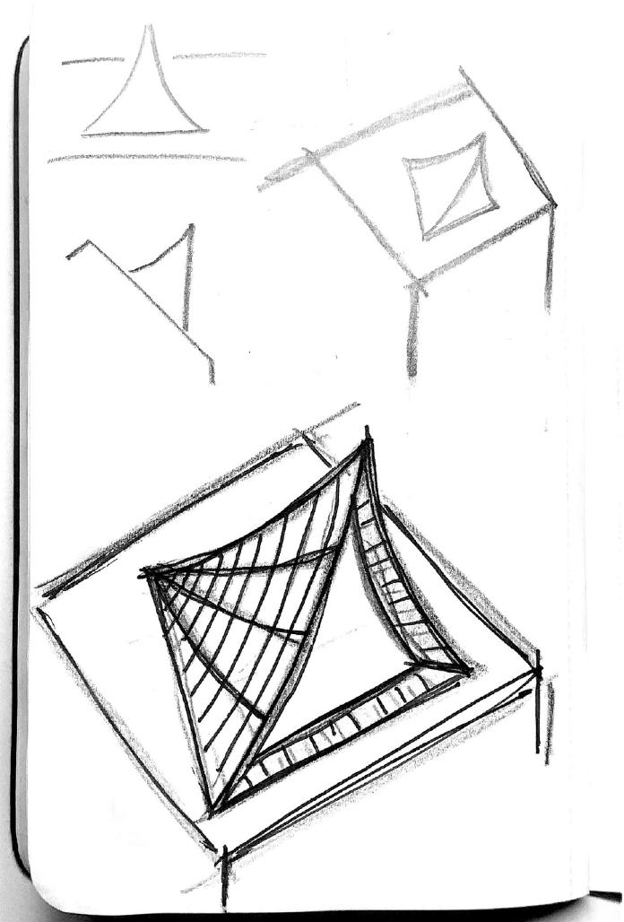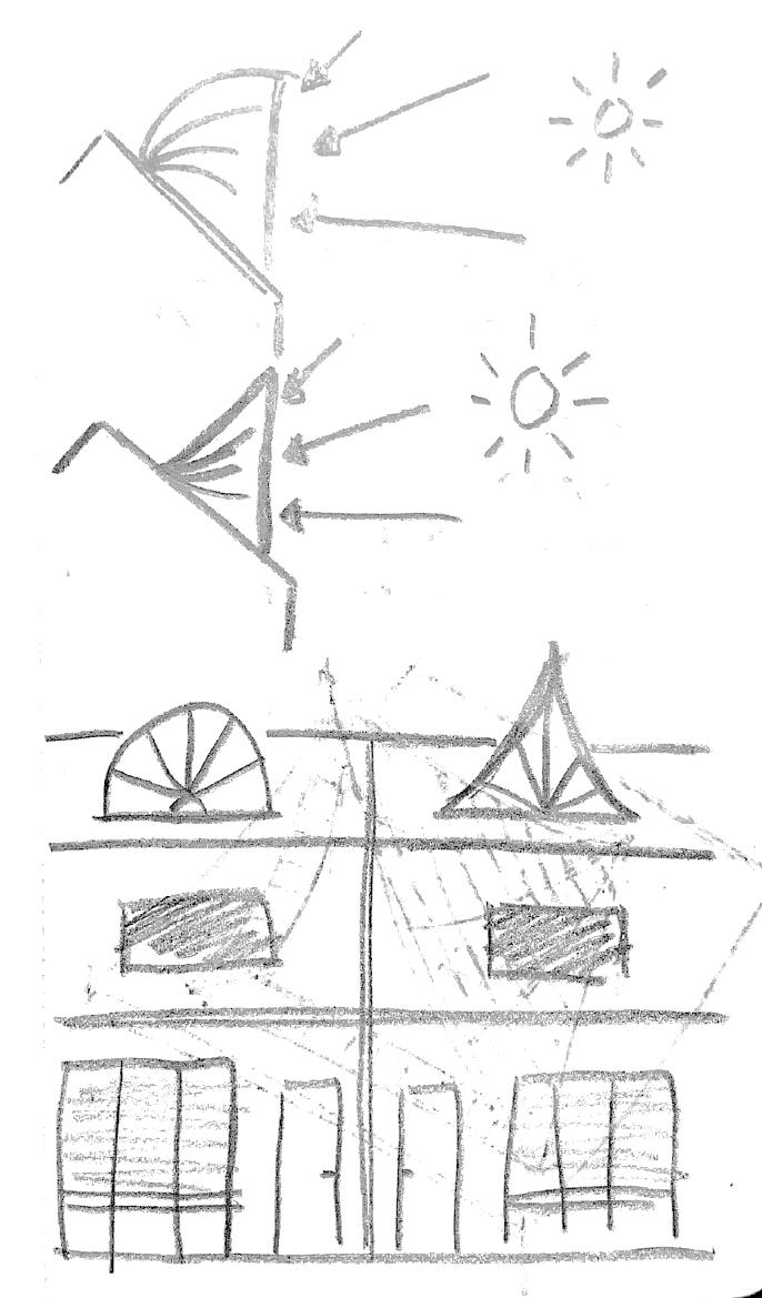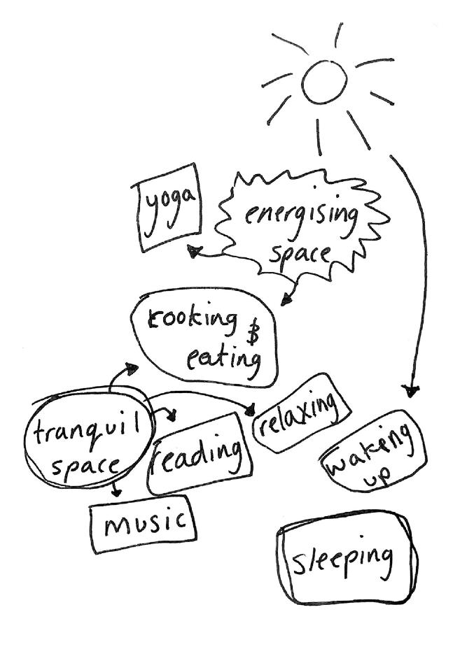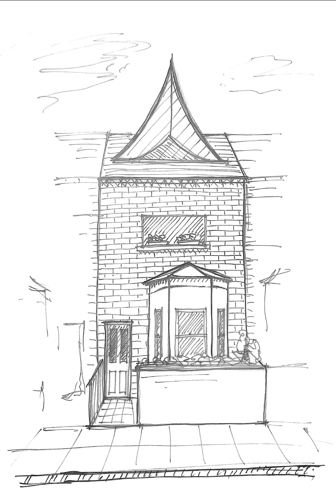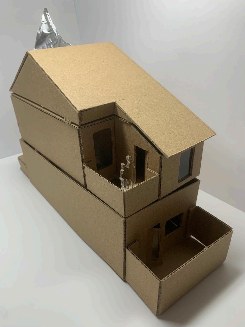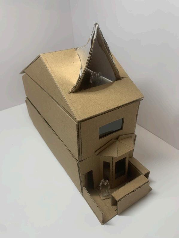 Using iterative model making techniques I discovered that turning a traditional dormer window upside down allows more direct sunlight into the room. I found inspiration in the ‘tree’ yoga pose and the bowed roofs of Buddhist temples. This helped me develop the window into a unique feature of the house.