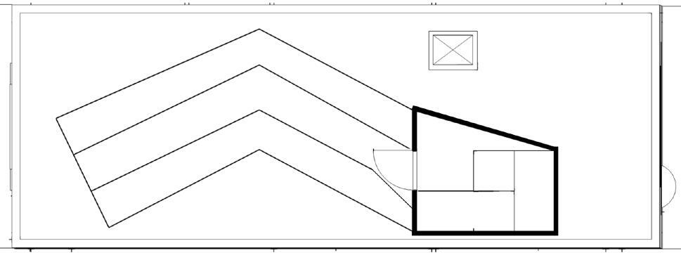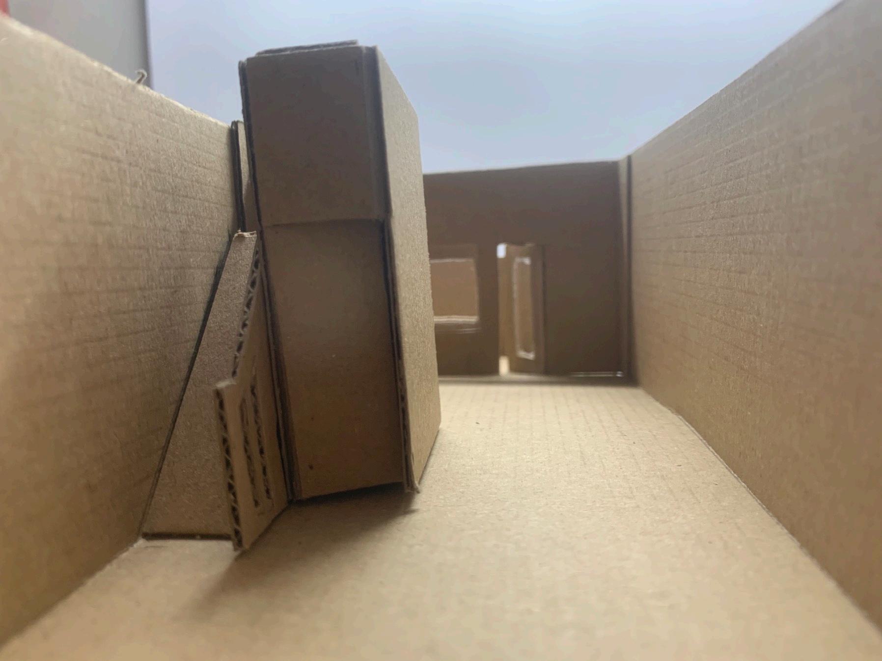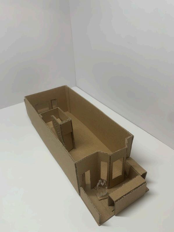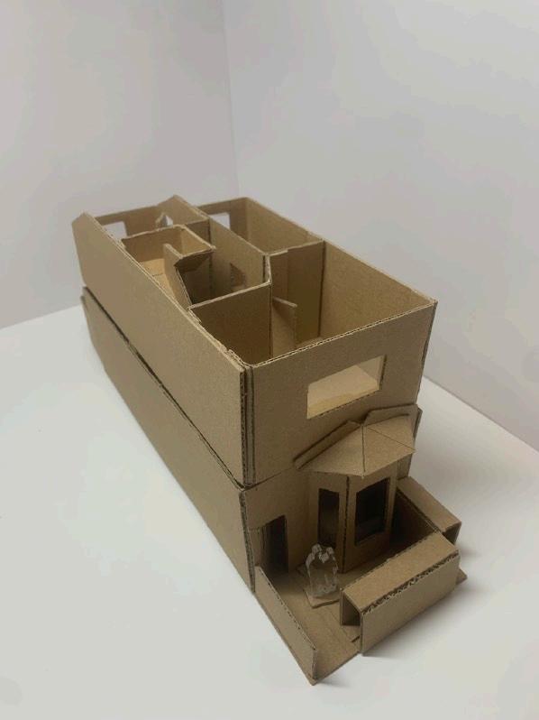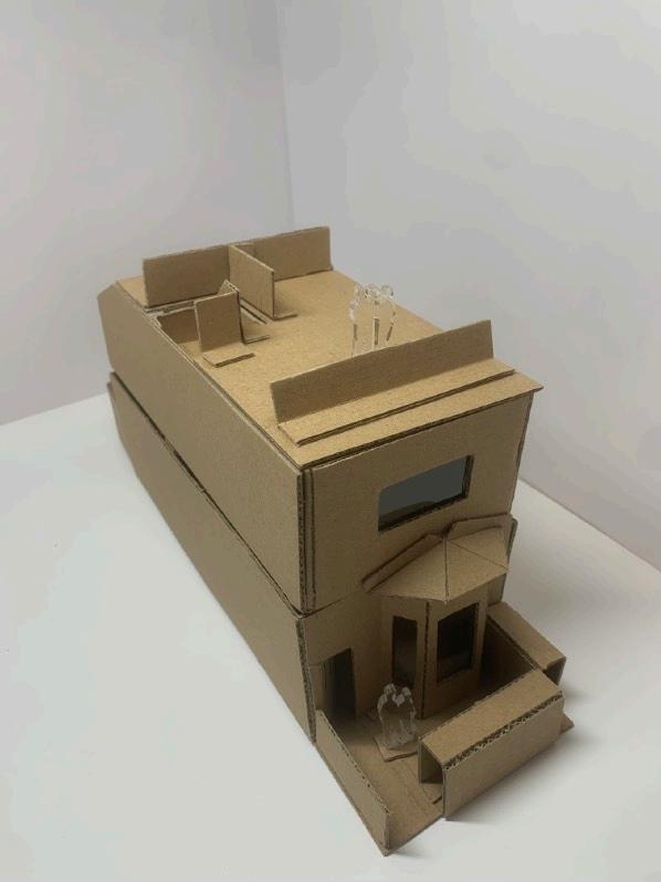 The model is a good way to understand the scale of each space within the house and explore how it will be inhabited. We can see Julia’s bedroom at the front of the house with a large window so she can see people passing by and engage with her neighbours. The front boundary wall acts as bicycle storage with a planter on top. This is not only practical, as Julia cycles to work, but it also gives her further opportunities to engage with the local community while gardening the planter. The loft has been converted to a yoga studio to assist Julia’s passion for yoga and exercise.