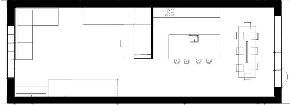 On the first floor is the family living room (5) with a desk for the mum (6) so she can work from home while keeping an eye on the kids. To the rear of the house is the kitchen/dining room (7) with an island for entertaining and for the children to eat their breakfast at.