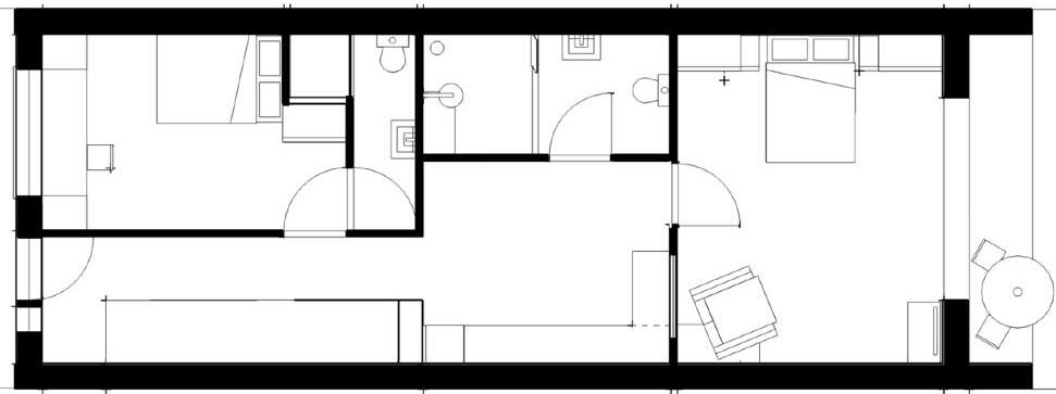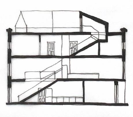 The rear of the first floor is occupied by Andres who values peaceful spaces to study and read. He has a personal roof terrace with views of the neighbouring gardens that is private enough for him to relax in.