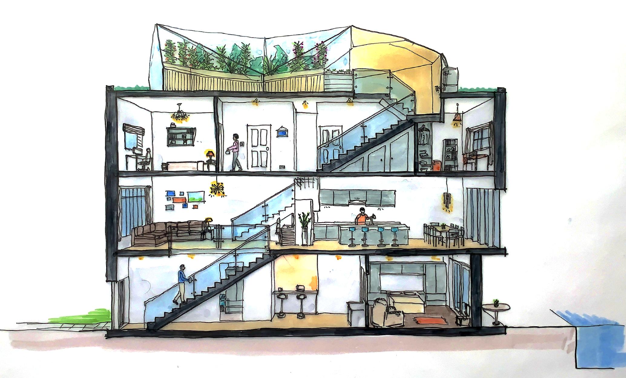 To encourage independence and interdependence, I had to understand what each family member required from the space and which amenities could be shared. Spatial planning helped me explore which rooms needed to be close to, or far away from others in order to positively influence interpersonal relationships.
