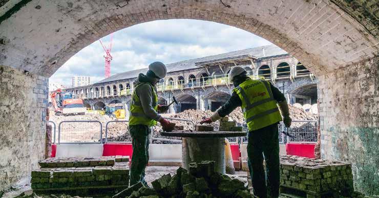 The risk of working from height could not be entirely eliminated for Coal Drops Yard, however the design of the low-rise structure with balconies and mezzanines slightly reduced the heights of potential falls.