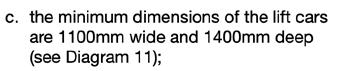 All lift cars conform with Lift Regulations 1997, SI 1997/831 and have a minimum width of 1100mm and depth of 1400mm.