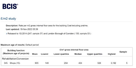 Choosing the The 2021 edition gives a estimates a cost of £750 to £960 per m² to fit out the retail units in Coal Drops Yard.