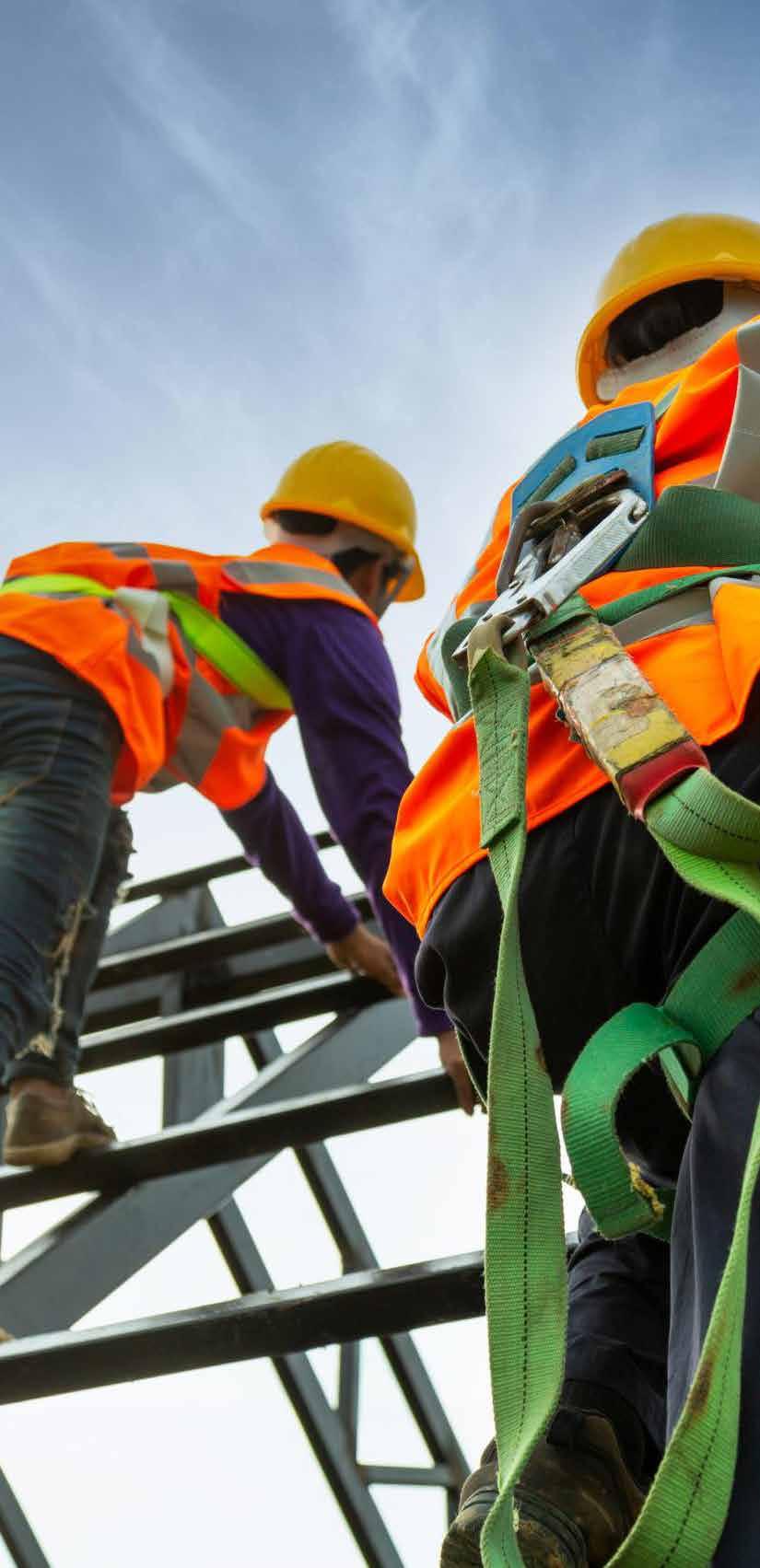 PPE should be a last resort, however it is useful to reduce risks when all previous steps have been followed. PPE for working at height includes harnesses, hard-hats and steel-capped boots.