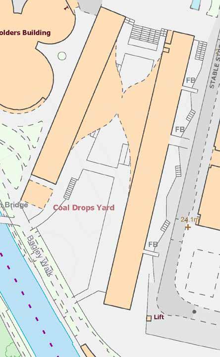 In addition to the external lift mentioned under ‘Accessibility: access to the building’ (p.14) Coal Drops Yard has 5 passenger lifts.