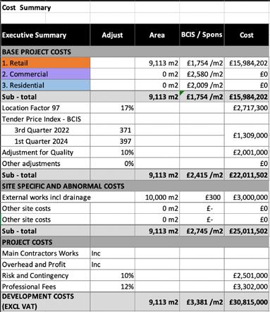 This data would provide an estimated range of; £750 x 9113 m² = £6 834 750 to £960 x 9113 m² = £8 748 480