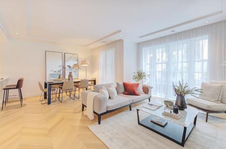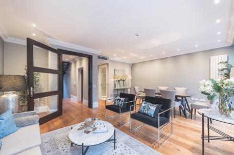 A boutique new development of six three-bedroom apartments (two duplex and four lateral) has been created behind the striking façade of 31 & 33 Chesham Street – a quiet residential road that radiates grandeur and elegance, originally built in the 1830s, and designed by renowned architect Thomas Cubitt. The majority come with private outdoor terrace or patio garden. There is direct lift access, and each apartment is sold fully furnished and interior-designed, with features including iLight systems, comfort cooling and underfloor heating. There is on-street parking for Royal Borough of Kensington and Chelsea residents, while underground parking is available to rent in Cadogan Place.
