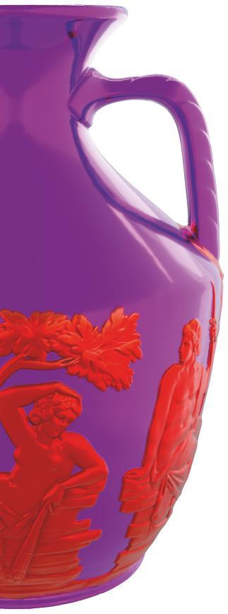 Furniture, from left Fendi Casa Selbit cabinet £29,310; Porada Vera armchair £4,258; accessories and homewares, from top Roche Bobois floor lamp £2,570; (on cabinet, from left) Kaymet serving tray £145; Soho Home Bennett red wine glasses £95 for set of four and Champagne coupe £95 for set of four; Sarah-Linda Indulge No. 2 side bowl £56.95; Roche Bobois Bahia vases 20cm, £200 and 40cm, £290, and Cloud Shiny Topaz centrepiece £380; House of Hackney Limerence cushion £175; Fendi Casa Buckle rug £11,760 and FF cashmere shearling cushion £3,960