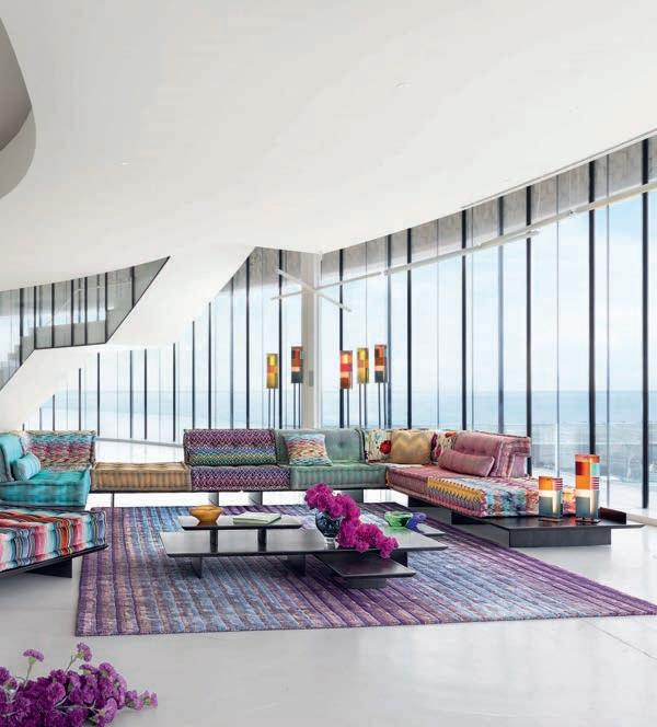 ROCHE BOBOIS - Third floor Mah Jong. Modular sofa, designed by Hans Hopfer. Upholstered in Missoni fabrics. Twin. Floor lamps and table lamps, designed by Clarisse Dutraive. Rockford. Rug, Missoni. French Art de Vivre