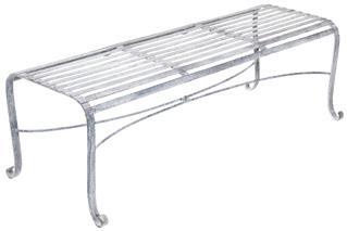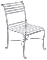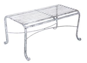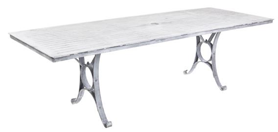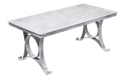 Each piece of furniture is chemically etched by hand after the zinc coating is applied leaving an antique finish. The joy of these hand processes means that every piece has its own character that evolves with age and improves as the product weathers. Colours can vary from light to dark grey. The finish is always varied, it is not a paint and is not intended to be completely uniform, which adds to the charm of these unique pieces.