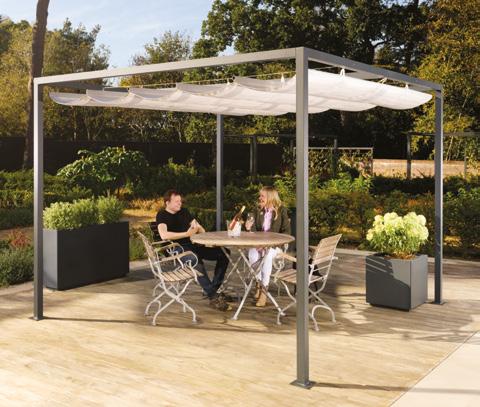 Retractable awning (pictured) and wire grid roof options (described on p.19).