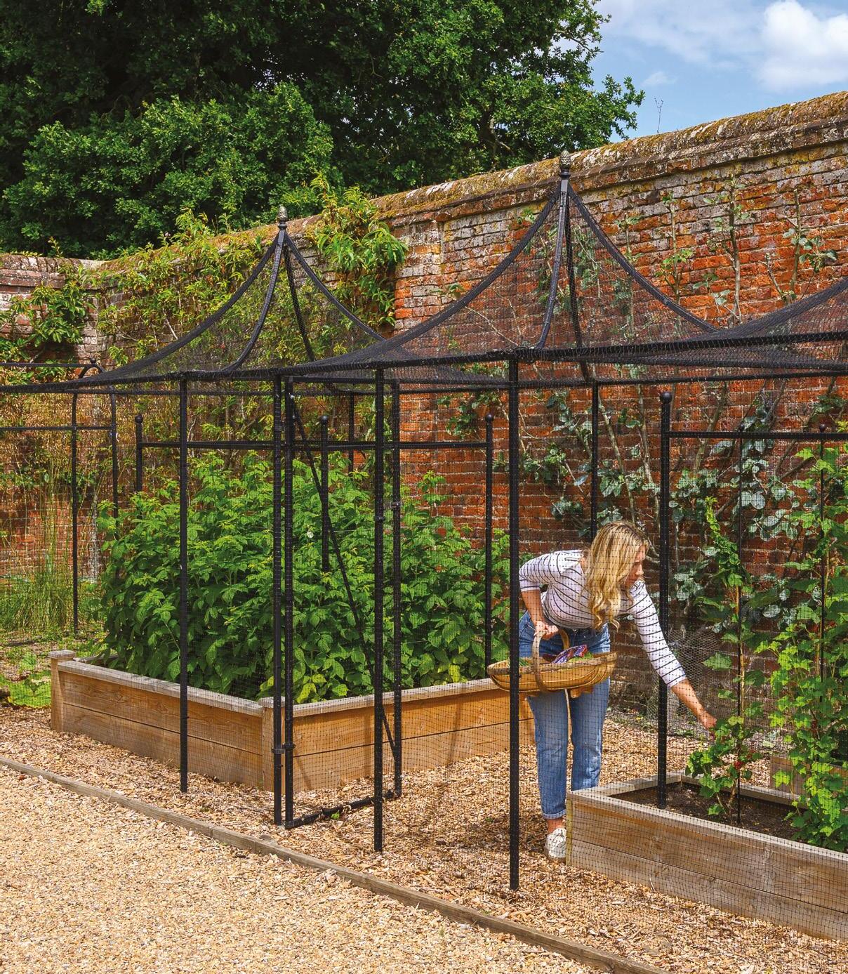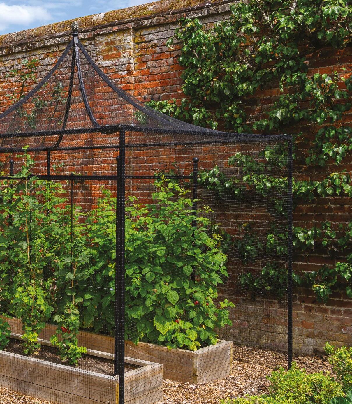 Fruit cages offer the ultimate protection for growing food to ensure a ready supply for the kitchen. Combine with fruit supports and metal or wooden raised beds to establish the growing area.