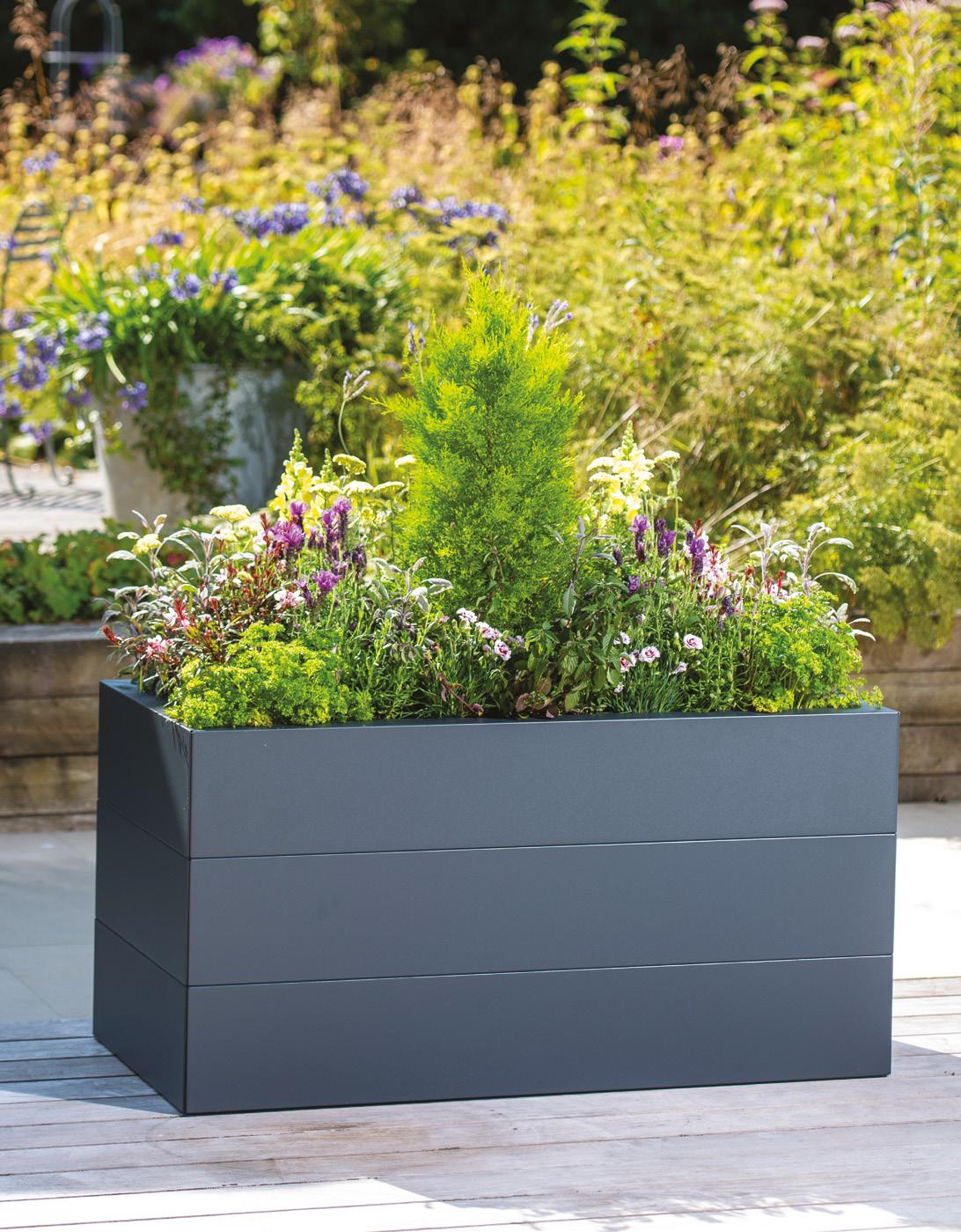 All metal raised beds available in 0.6m, 1.2m, 1.8m and 2.4m sizes, square or rectangular. Heights 20cm, 40cm and 60cm.