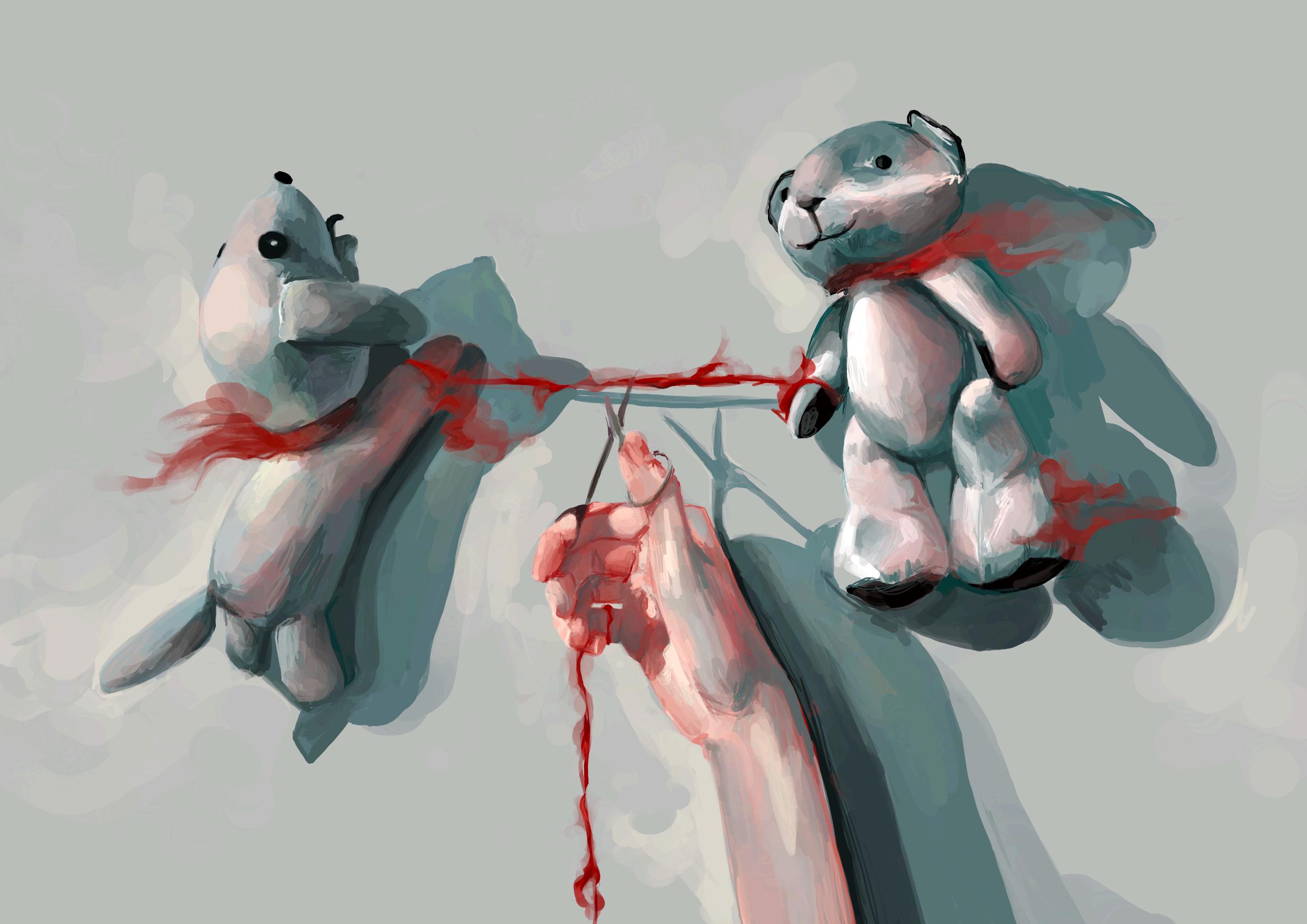 “Inspired by the belief in the red thread of fate from Chinese mythology, I decided to explore the themes of soulmates and having a destined person. Having someone who is meant to be with you, who will inevitably find you due to this connecting string, seemed comforting yet daunting to me. On the one hand, this belief would mean that there would always be someone in this big, overwhelming universe meant for me; I would never be alone. However, for the better or the worse, this string can never break. So what if I am inescapably destined to be with someone who is the perfect epitome of pure evil? The idea of a soulmate, leaving you rendered powerless at the hands of some fate, seems absolutely terrifying - terrifyingly thrilling!”