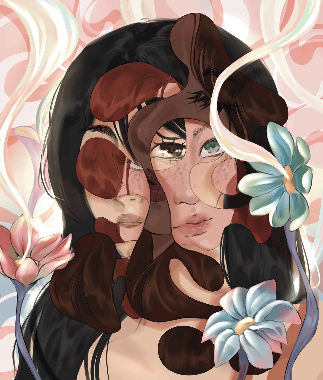 This artwork adheres to the theme ‘You’ as it explores the themes of uncertainty in a person’s future. As a Year 12 student, graduation is drawing close, and it’s a very stressful time in which my main concern is the future. The glitching person in the girl’s eyes reflects how the future seems so fragmented in the present moment.
