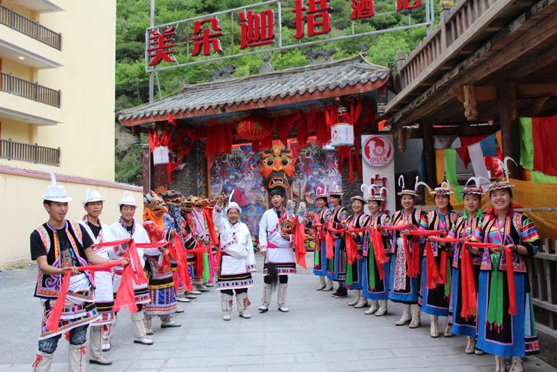 新开发的“⽩⻢⼈家” 藏家乐位于九寨沟县漳扎镇漳扎村,主要由参观⽩ ⻢博物馆、体验美⻝、欣赏⺠族歌舞展演和参与涂墨狂欢等活动组成。