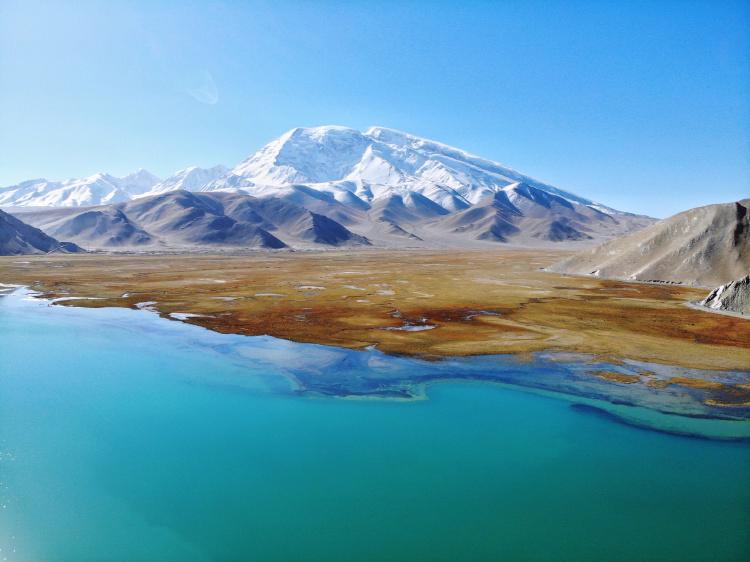 喀拉库勒湖位于中国新疆维吾尔自治区喀什 地区的帕米尔高原东部。它被誉为“高原明 珠”,海拔3600米左右,是 个典型的冰川融 水形成的湖泊。湖泊周围被雄伟的山脉所环绕, 其中包括壮观的慕士塔格峰,它的雪顶在阳光下 闪闪发光,给湖泊增添了一丝神秘与庄严。