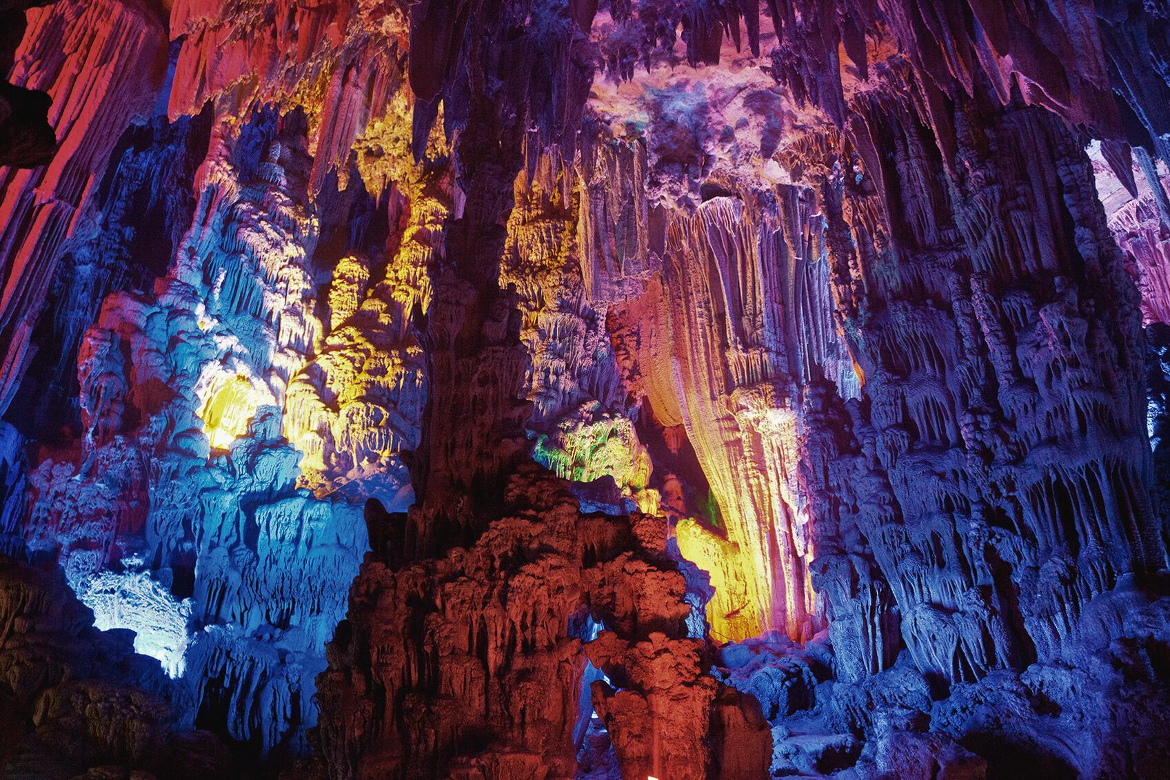 在芦笛岩内部,有⼀条幽深的溶洞。进⼊洞内,你会被壮观的钟