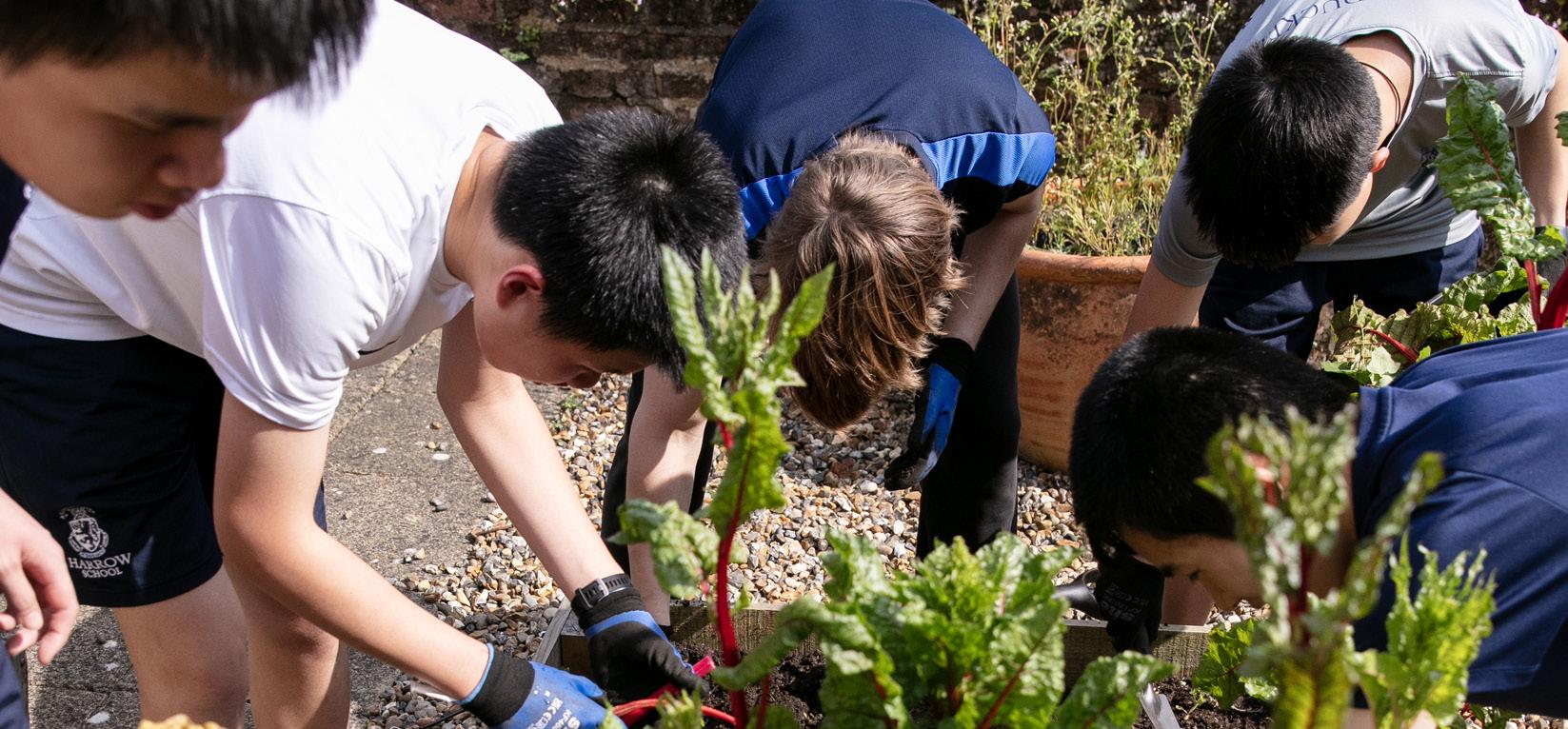 Boys in The Grove with an enthusiasm for horticulture have established the Grove Gardening Club. Its goal is to promote sustainable agriculture and show people where their food comes from. Member have grown courgettes, jalapeno chillies, cherry tomatoes, rhubarb chard, French beans, spinach, green and red lettuces, rainbow radishes, mustard leaves, mizuna, pak choi and mixed salad leaves. They also have a herb bed with basil, parsley, thyme, rosemary and salad onions, as well as a strawberry bed interplanted with garlic to fend off pests. Teaming up with Harrow's Horticultural Society, the club aims to provide fresh and organic produce to all members of the Harrow community, so that everyone can enjoy a taste of fresh fruit and vegetables, grown in the rain and sunshine!