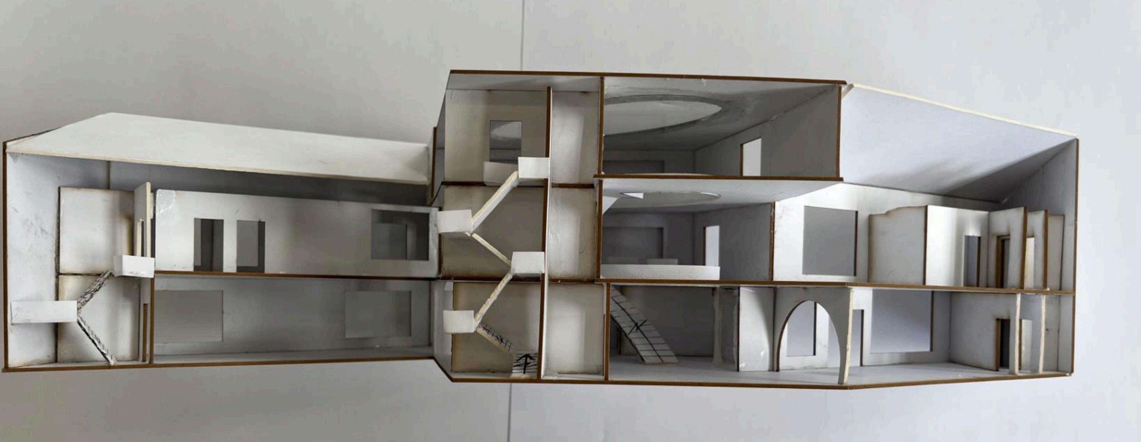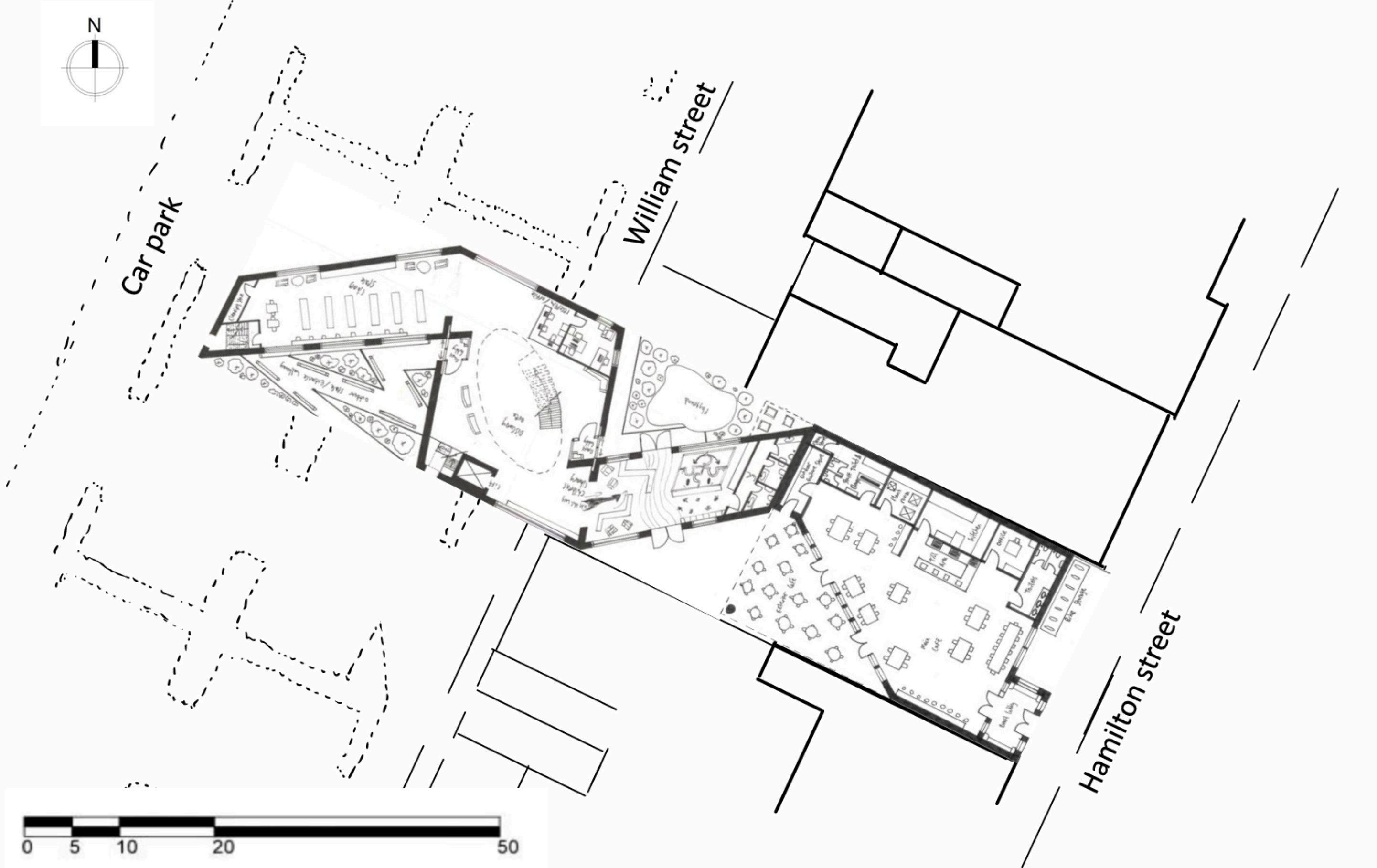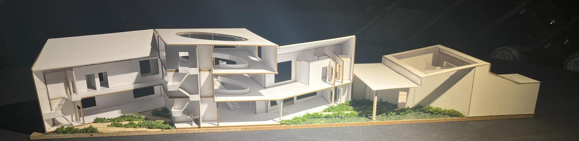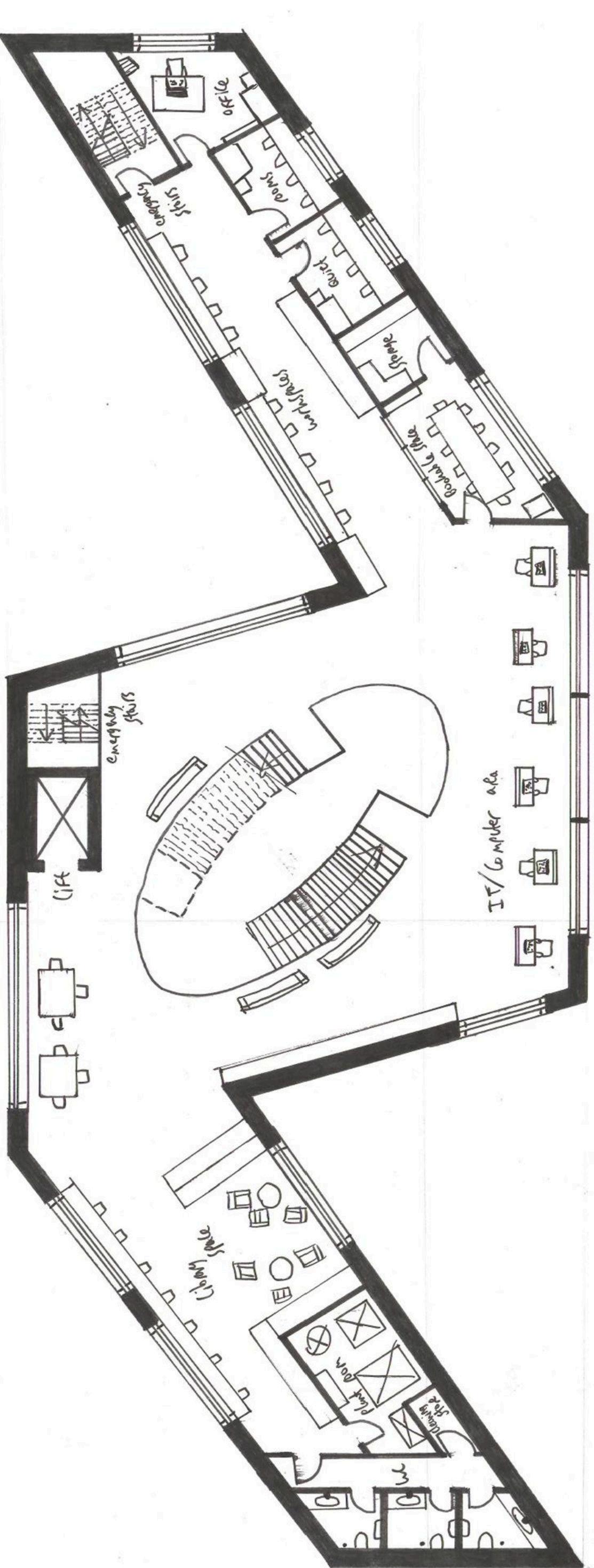 The project was based on a site in Birkenhead, the Wirral, with a brief split into two parts. The first to design a small cafe space on the site and the second to design a library on the site that is somewhat connected to the cafe designed previously. The design of the buildings themselves was undefined and could be taken in any direction desired. The design had a central atrium containing a void through all three storeys with north and south wings which connect it to the cafe space.