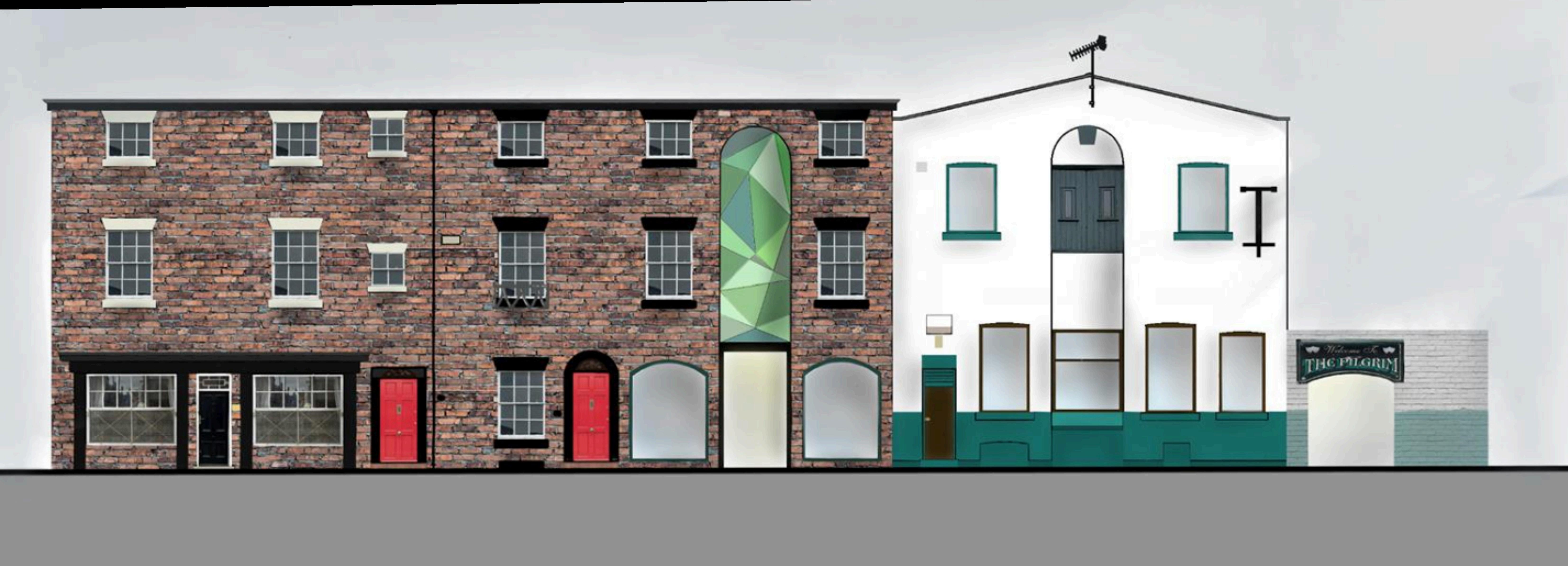The design continues the brick facade of the buildings to the west while incorporating the arch of the pilgrim pub to the east. The merging of their facades gives the illusive idea of whether or not the artist lives there.