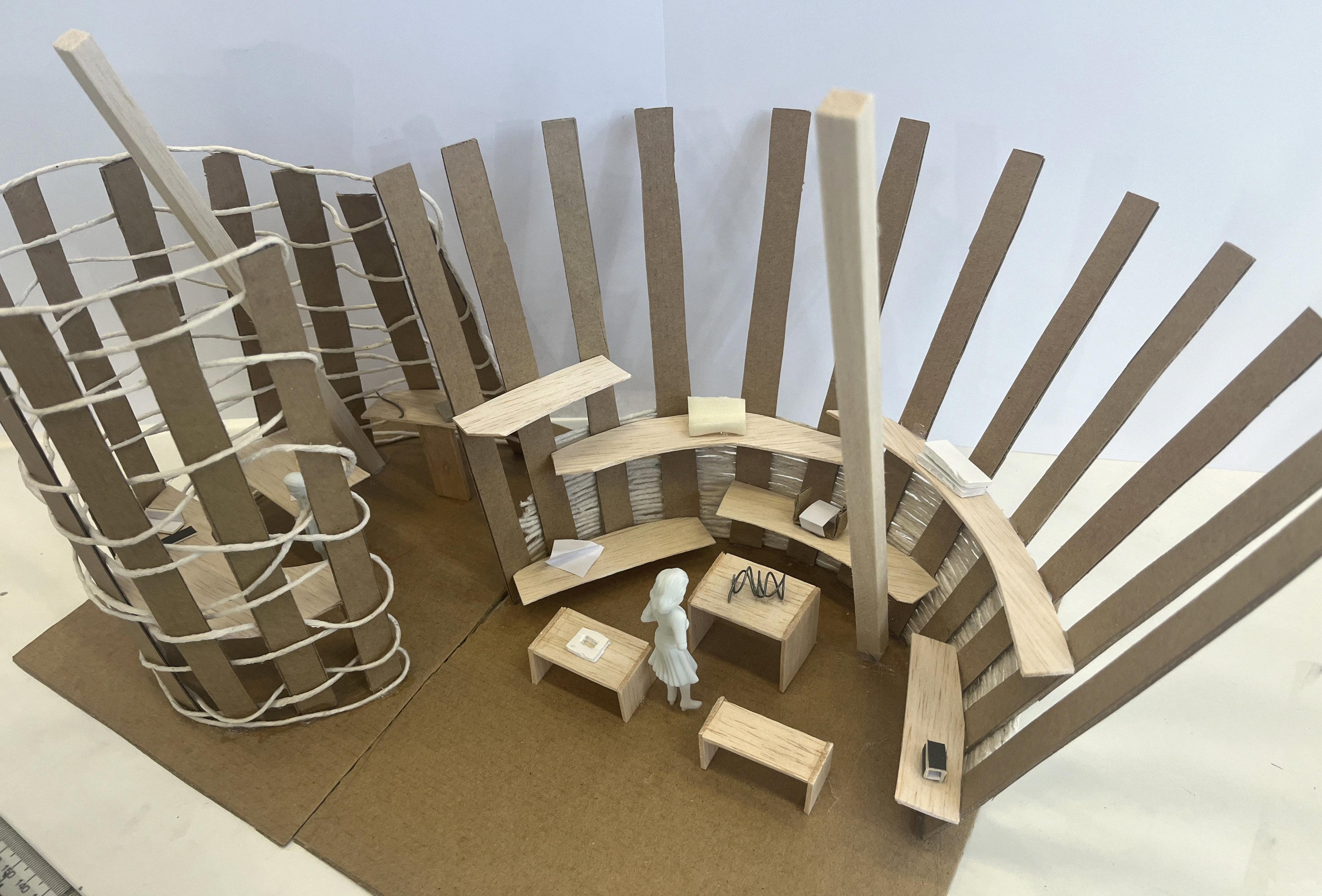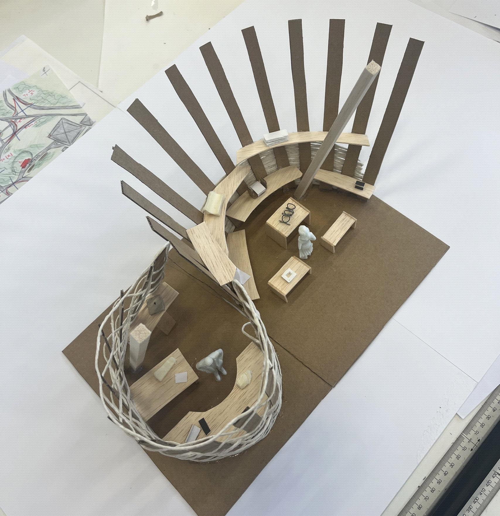 Initial paper model test 1:50 massing model 1:20 Final outdoor classroom model