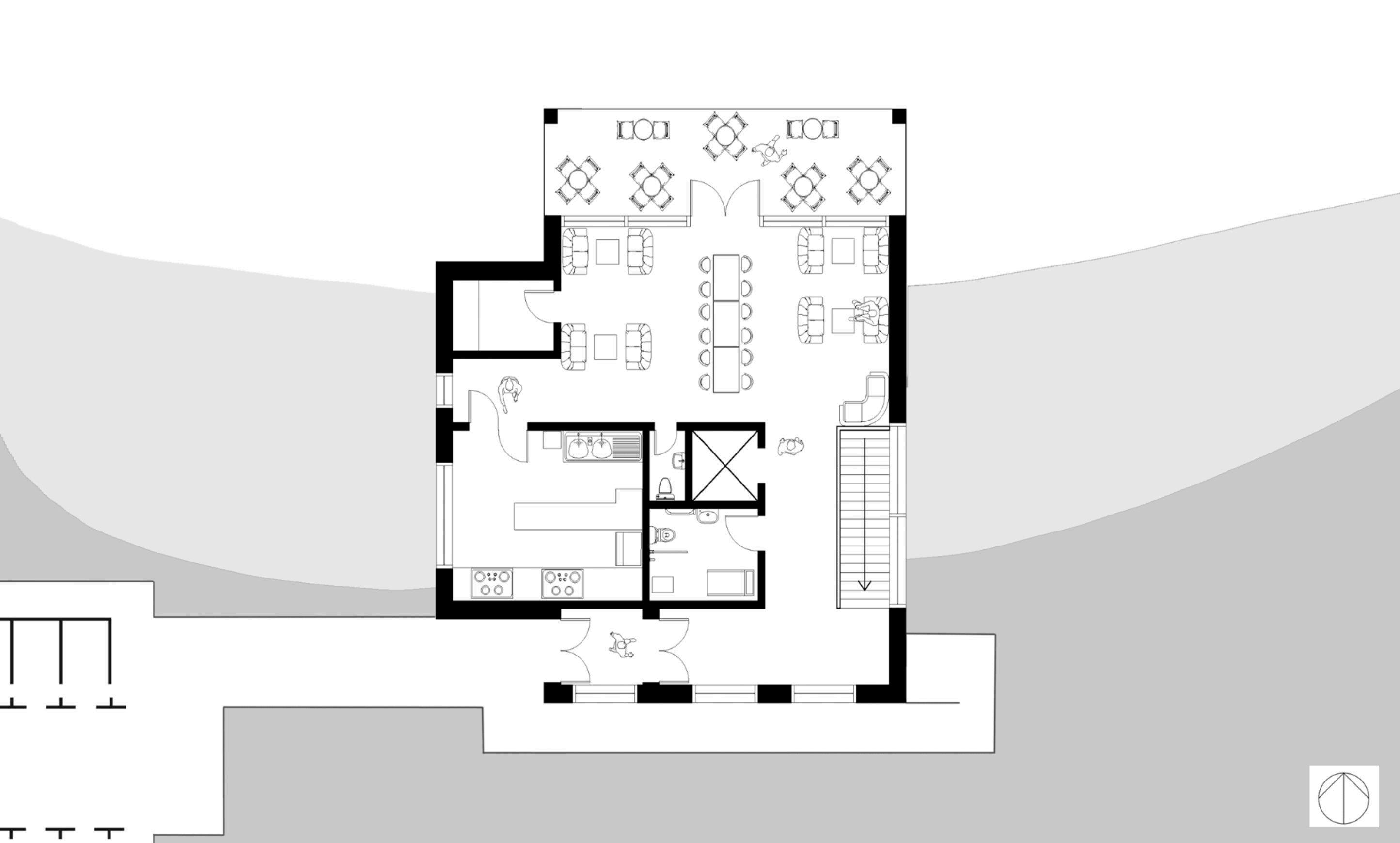 For the community cafe project the site was based in the Mediterranean climate of Cape Town, South Africa. The brief asked for a focus on the community and how the cafe could be integrated into the site and its wider context. The design was a concrete structure split onto two storeys; with the cafe on the ground level and the services placed into the basement. The north elevation was fully glazed to give views of the coastline.