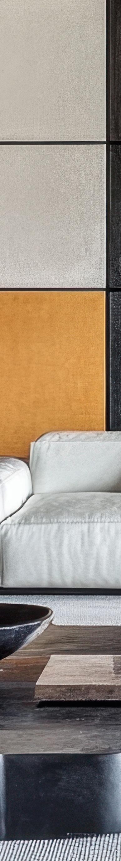 placing furniture a bit out from the edges of a room can be an elegantly different approach. Here that same strategy is carried out in the living room by placing the sofa in front of a bookshelf. This saves wall space and creates a coziness while providing some extra dimension to the room. The curtain in front of the shelf removes visual distraction and can also be used as a form of sound insulation, creating a space that is more peaceful and quiet.