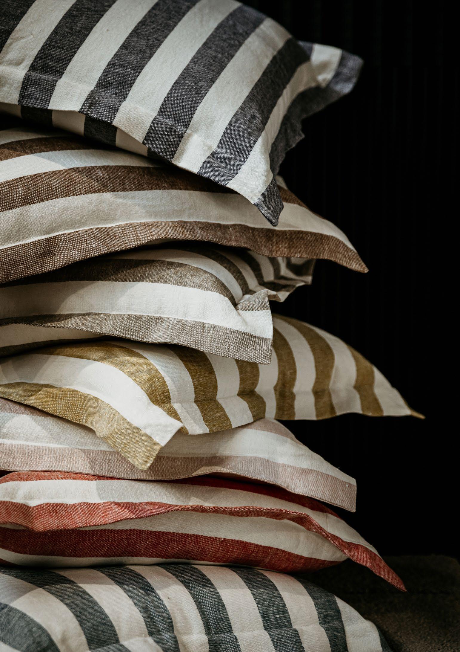 Evoking the bliss of a coastal European escape, Amalfi stripe cushions made with 100% Washed European Linen offer a contemporary take on classic continental styling. Naturally textured linen in a range of summery, soft stripe colours bring an effortless chic to any furniture selection.