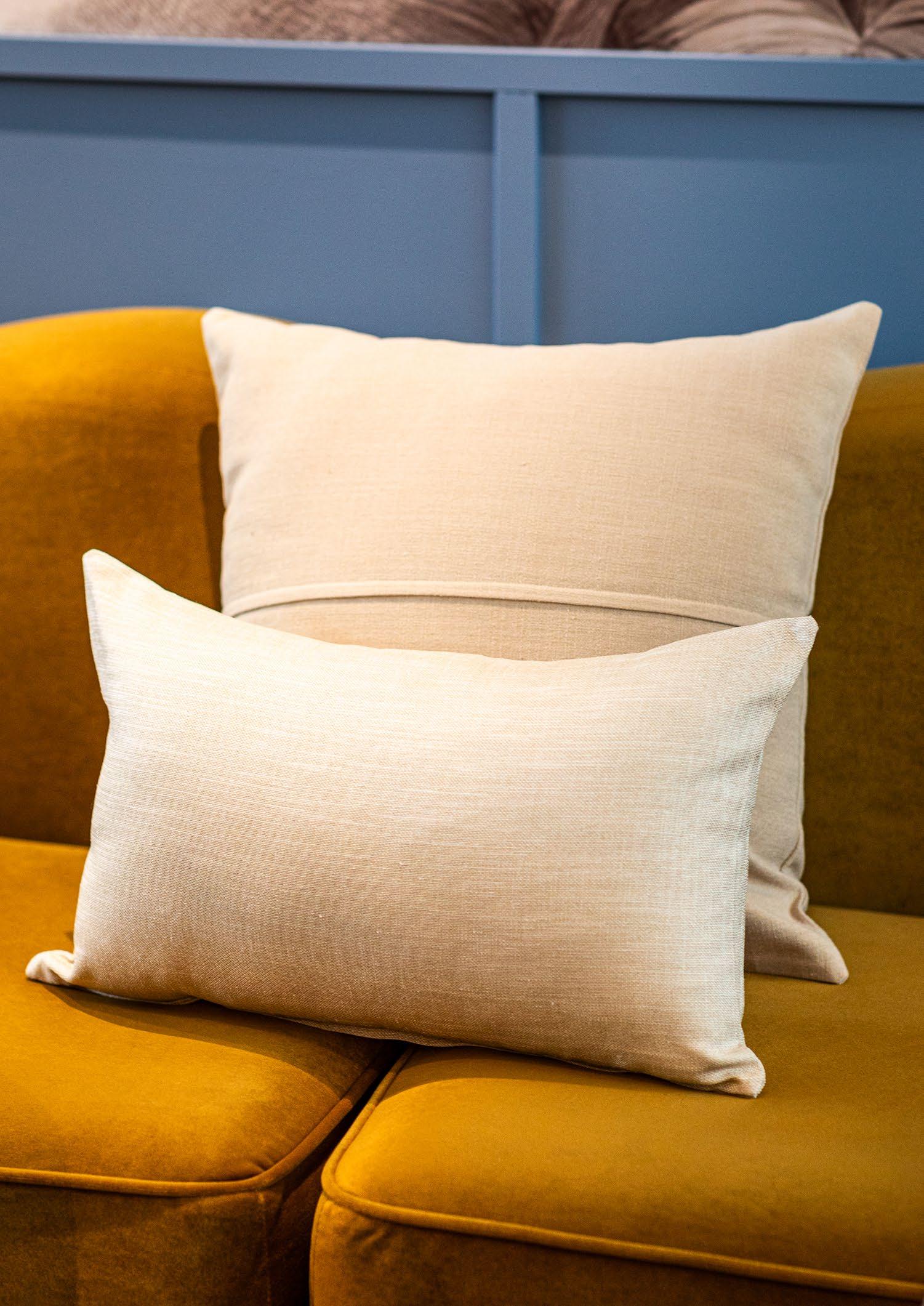 A great range of gently toned cushions in soft, weave fabric. A go-to style when creating neutral or relaxed looks.